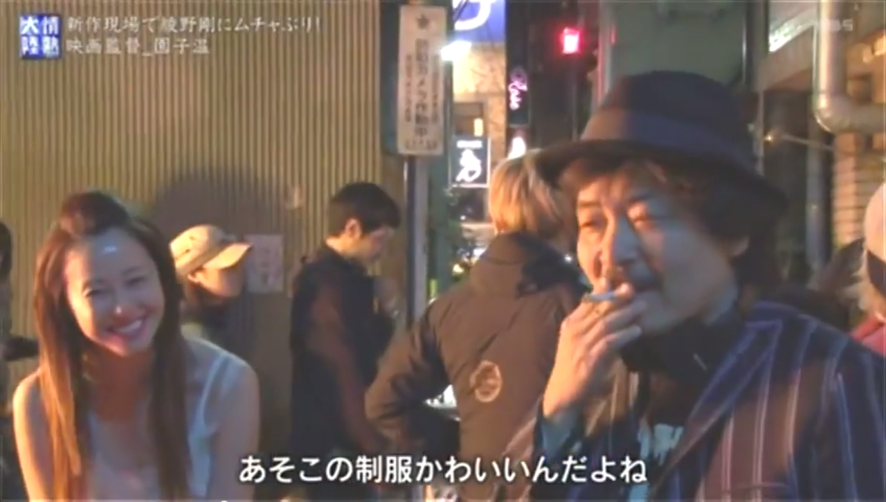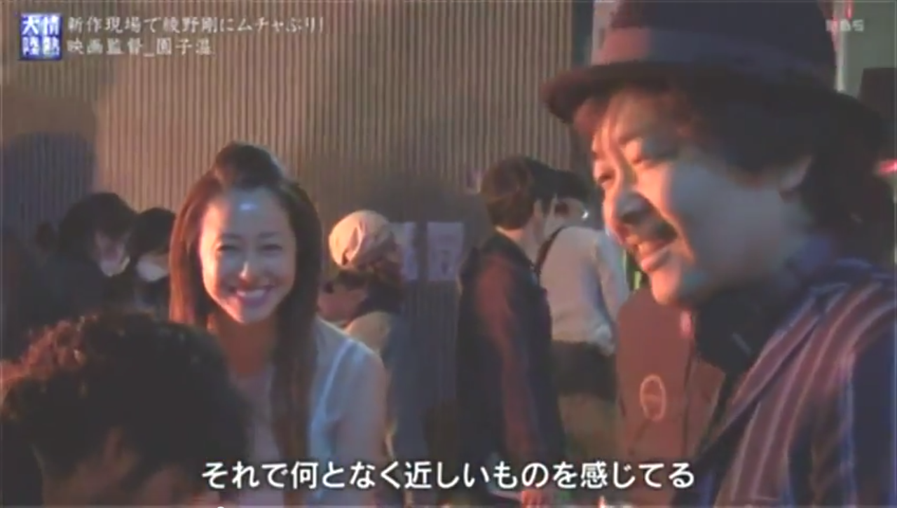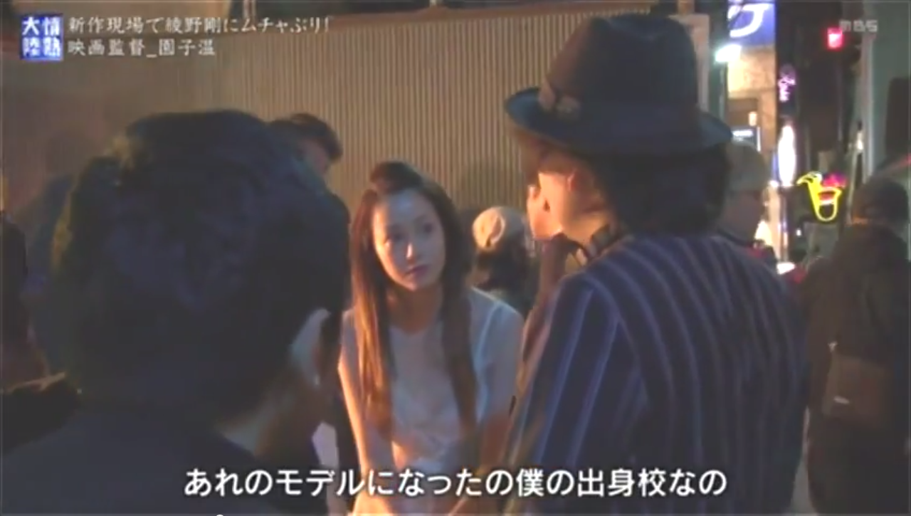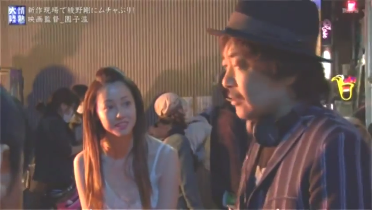 (シーンは、現在撮影中の園さん映画「新宿スワン」のロケ、女優・沢尻エリカさんに)