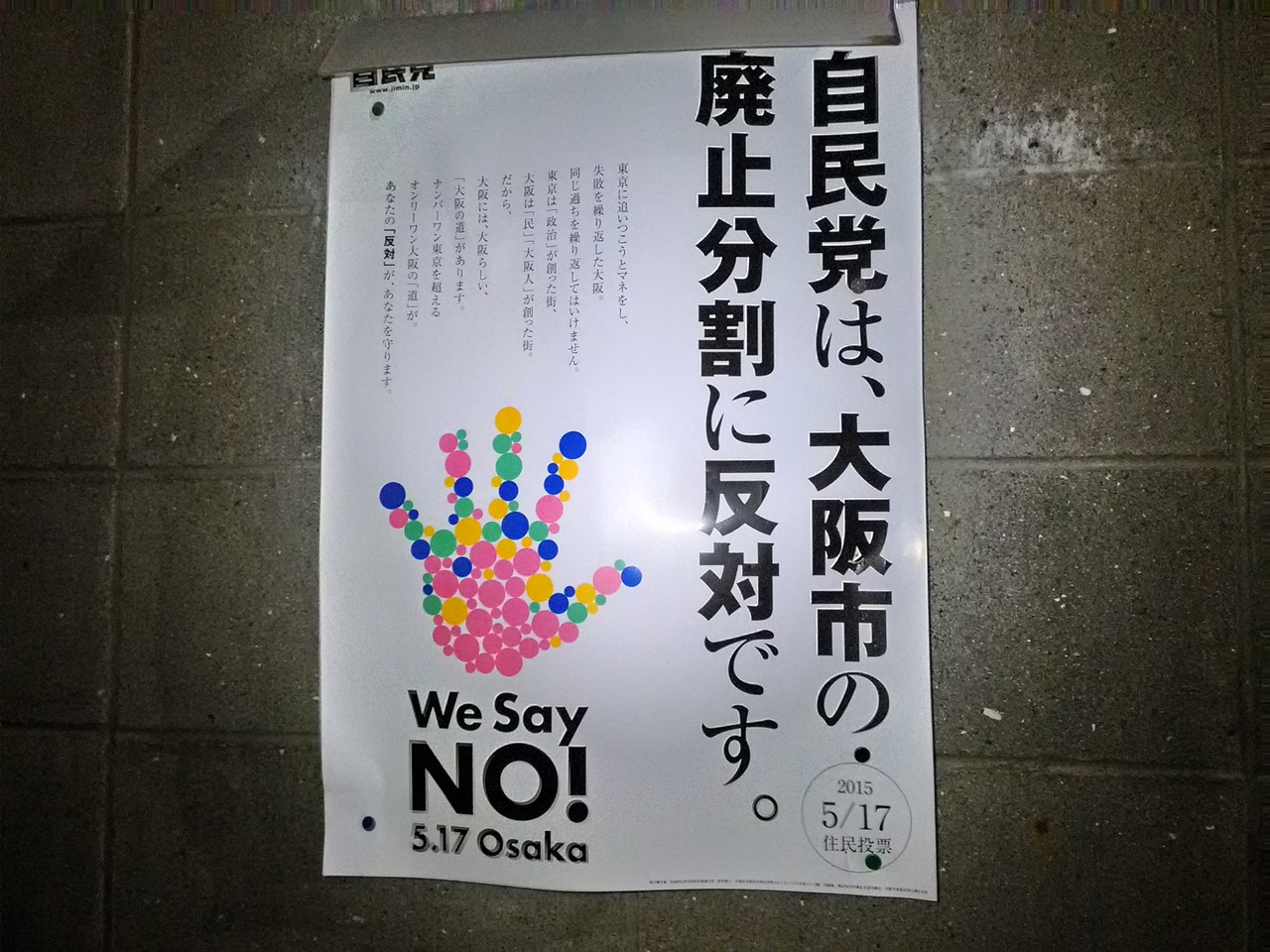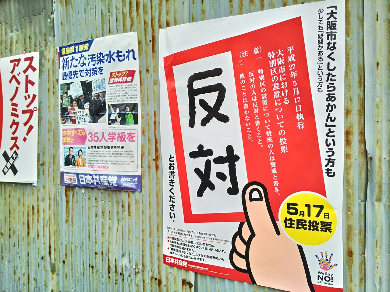 今回、見つけたポスターは、賛成が2種、反対が5種。 その分、1種あたりの枚数は、賛成の方がよく見かけました。 しかし、反対の方がたくさんいる印象。 世論調査では、賛否拮抗なのに。