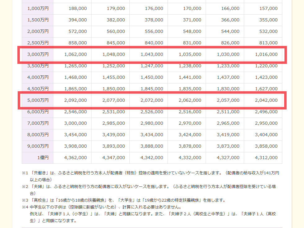 もし年収(給与収入)3000万なら約100万まで、年収5000万なら約200万まで、実質負担2,000円で、寄附できます。