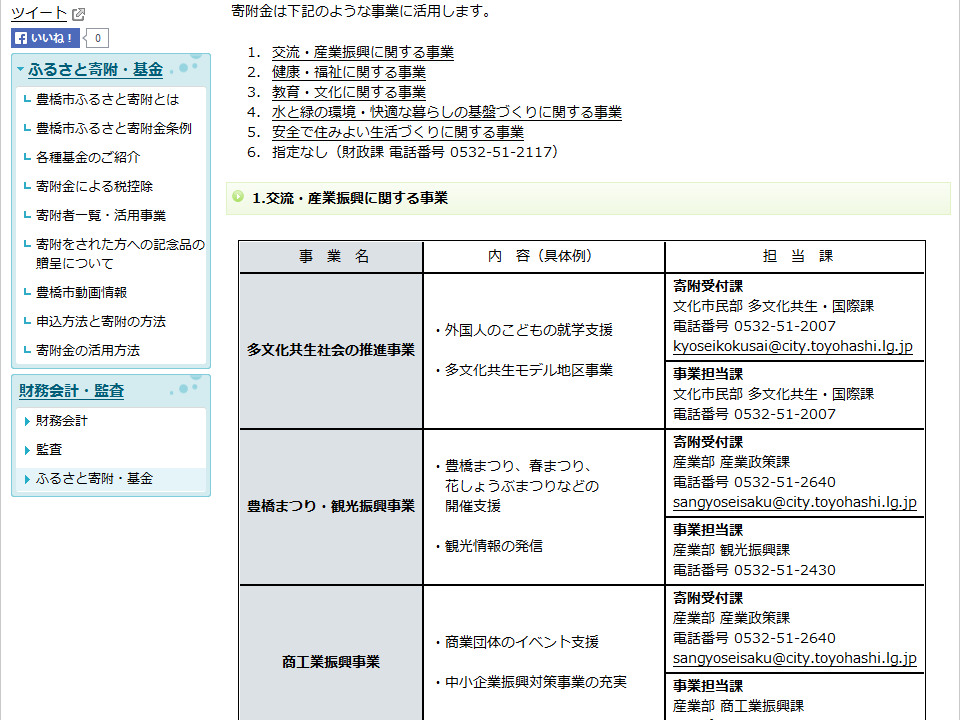例えば、豊橋市の場合、こんな感じで自分で寄附する事業を選ぶことができます。