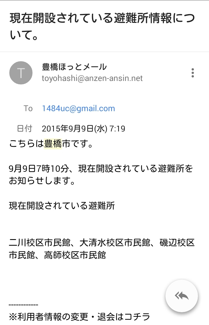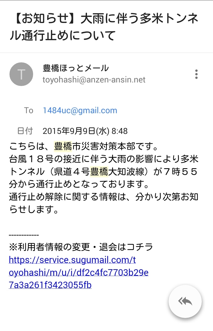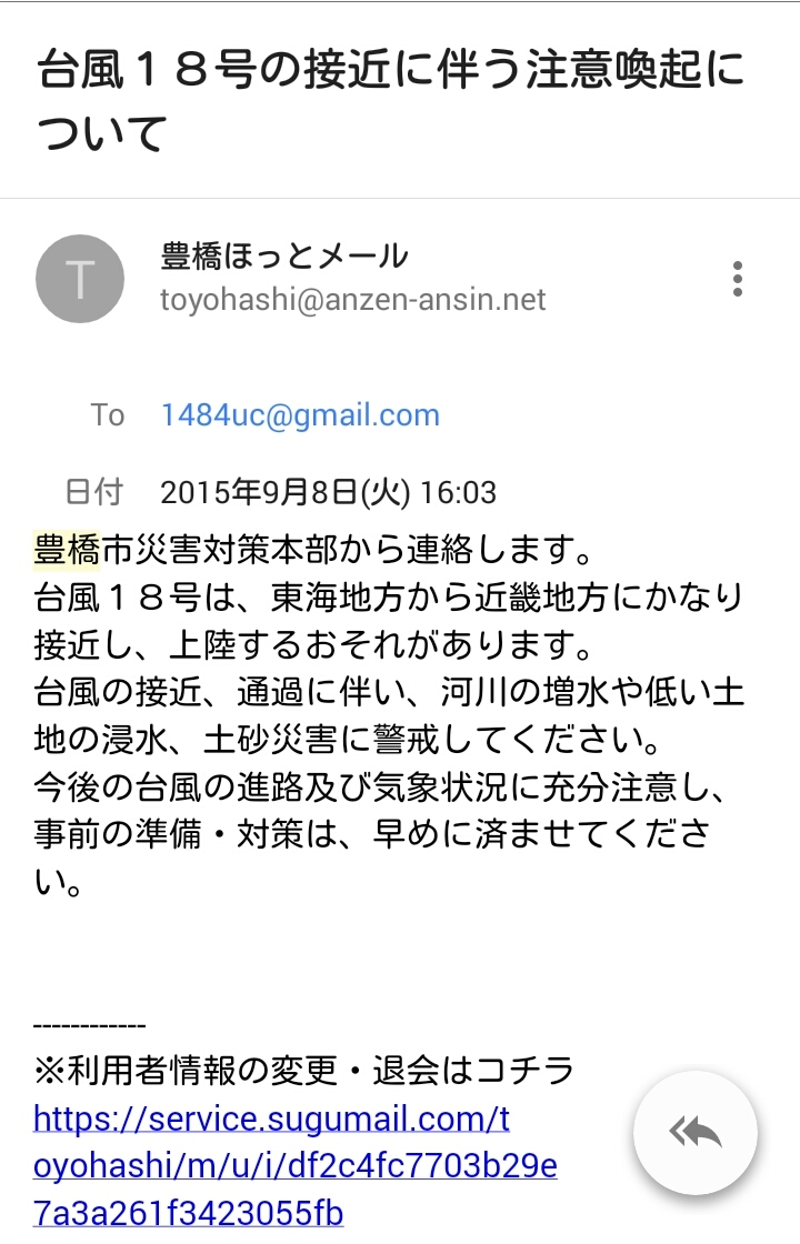 豊橋ほっとメール、過去にもブログで触れましたが、通常は週1~2通程度でそれほど邪魔にならず、身近な情報も来るので、オススメします。 登録はこちらから。