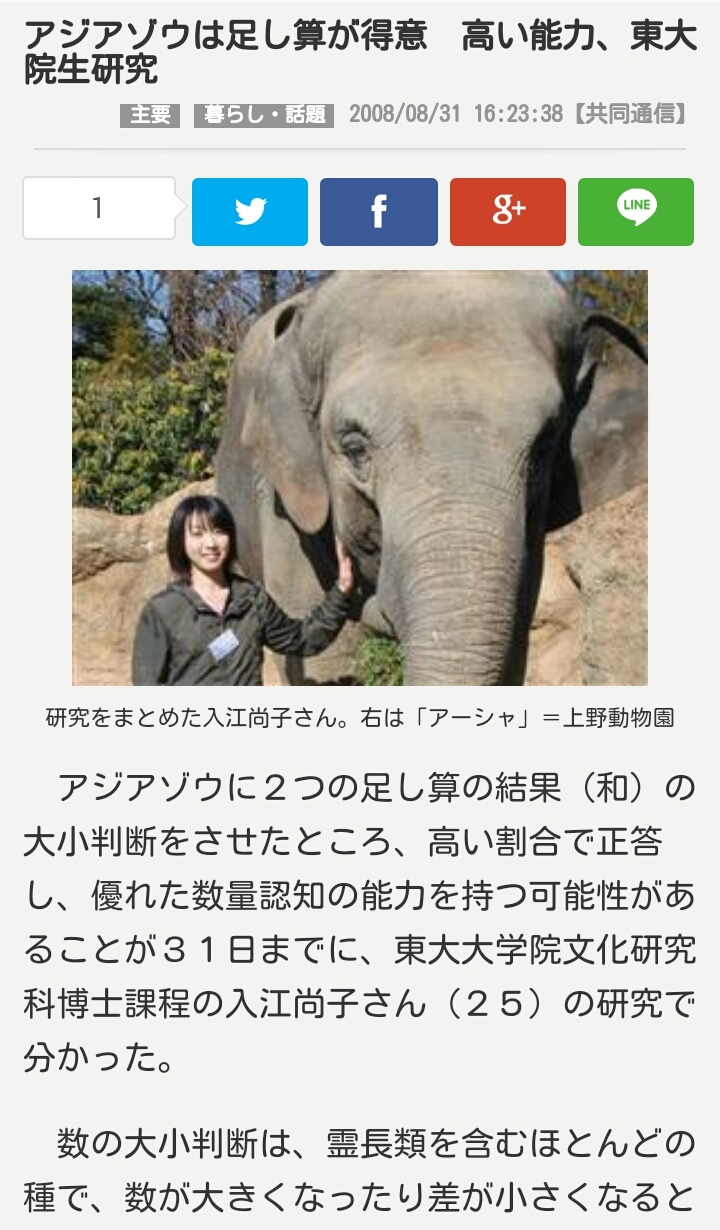 2008年の記事ですが、この入江尚子さんが、研究室の先輩で、アーシャーといっしょに研究をしており、私たちも実習の一環でおじゃまさせてもらったことがあります。