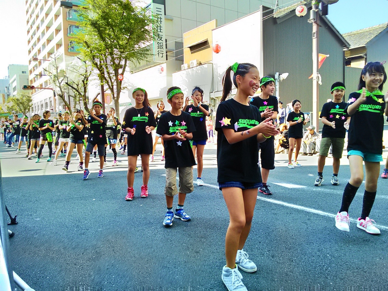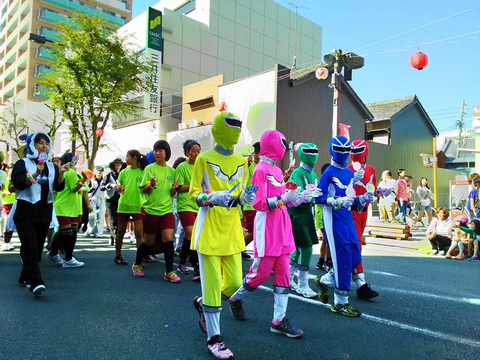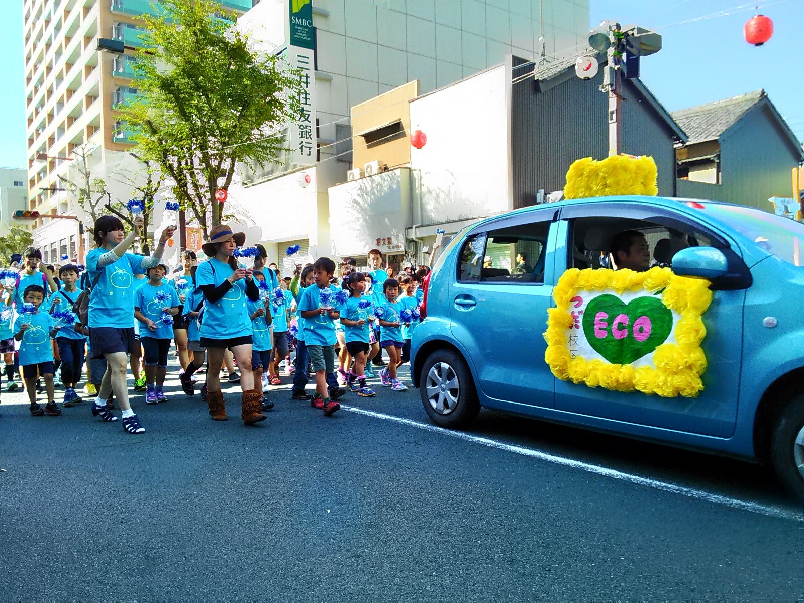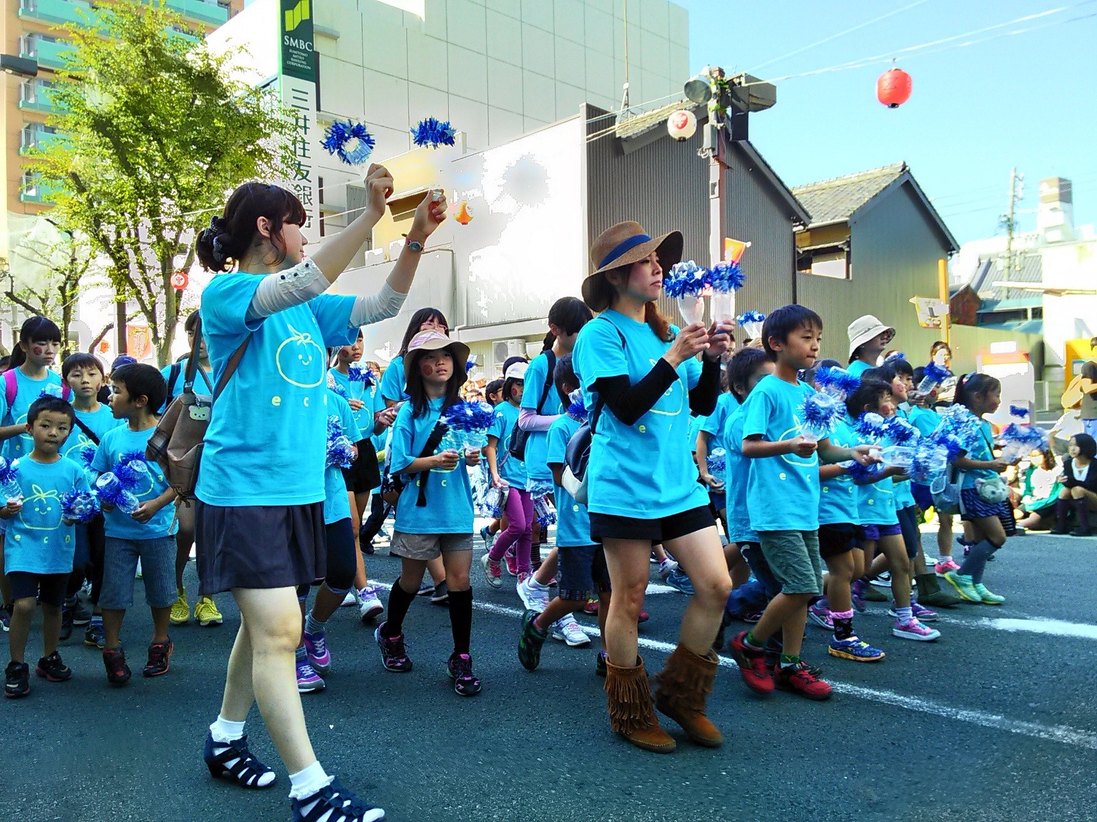 エコがテーマということで、ペットボトルの鳴り物で行進