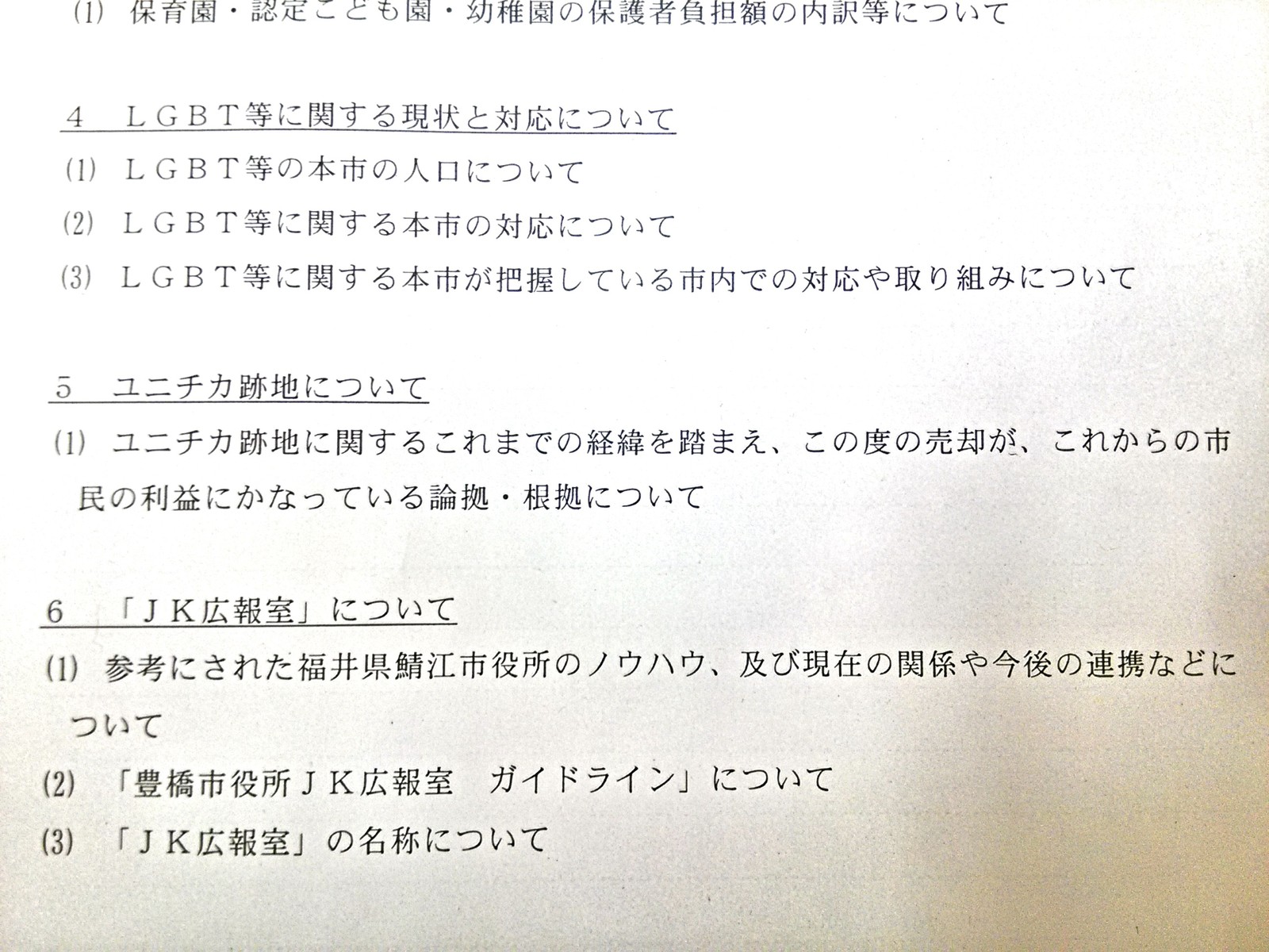 4は、このテーマが豊橋市議会で取り上げられるのは、たぶん全くの初めてではないか、ということ。