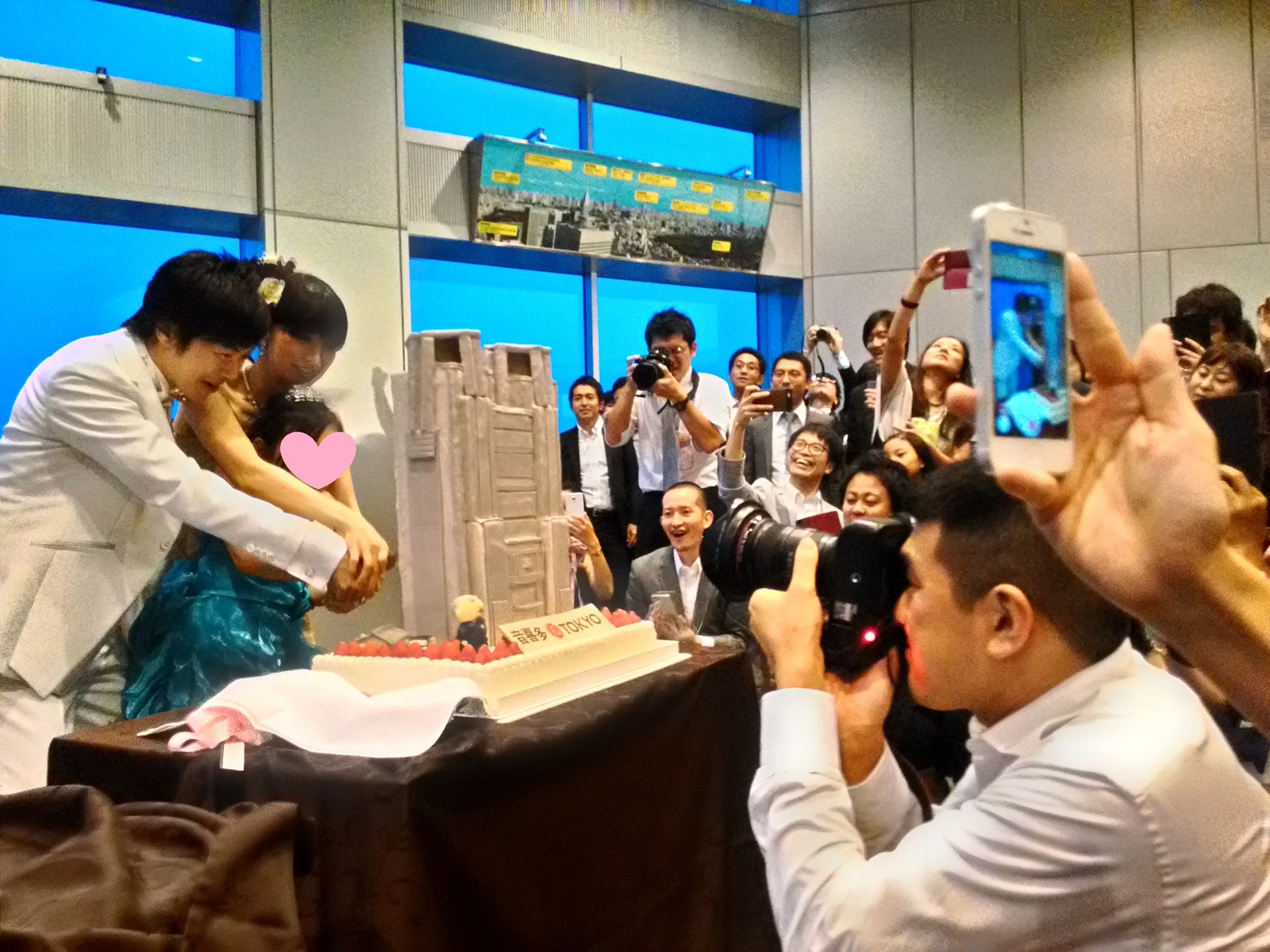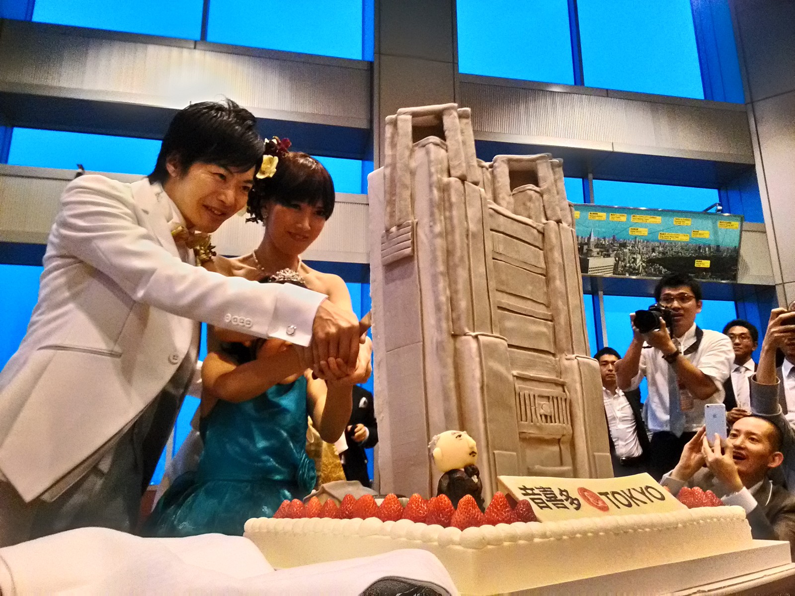 音喜多駿(現・東京都議)の結婚パーティーが、都庁で開催されました。