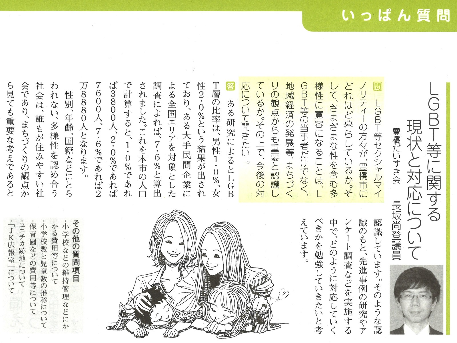6月議会でした、LGBTについての質問を掲載した市議会だよりが発行されました。