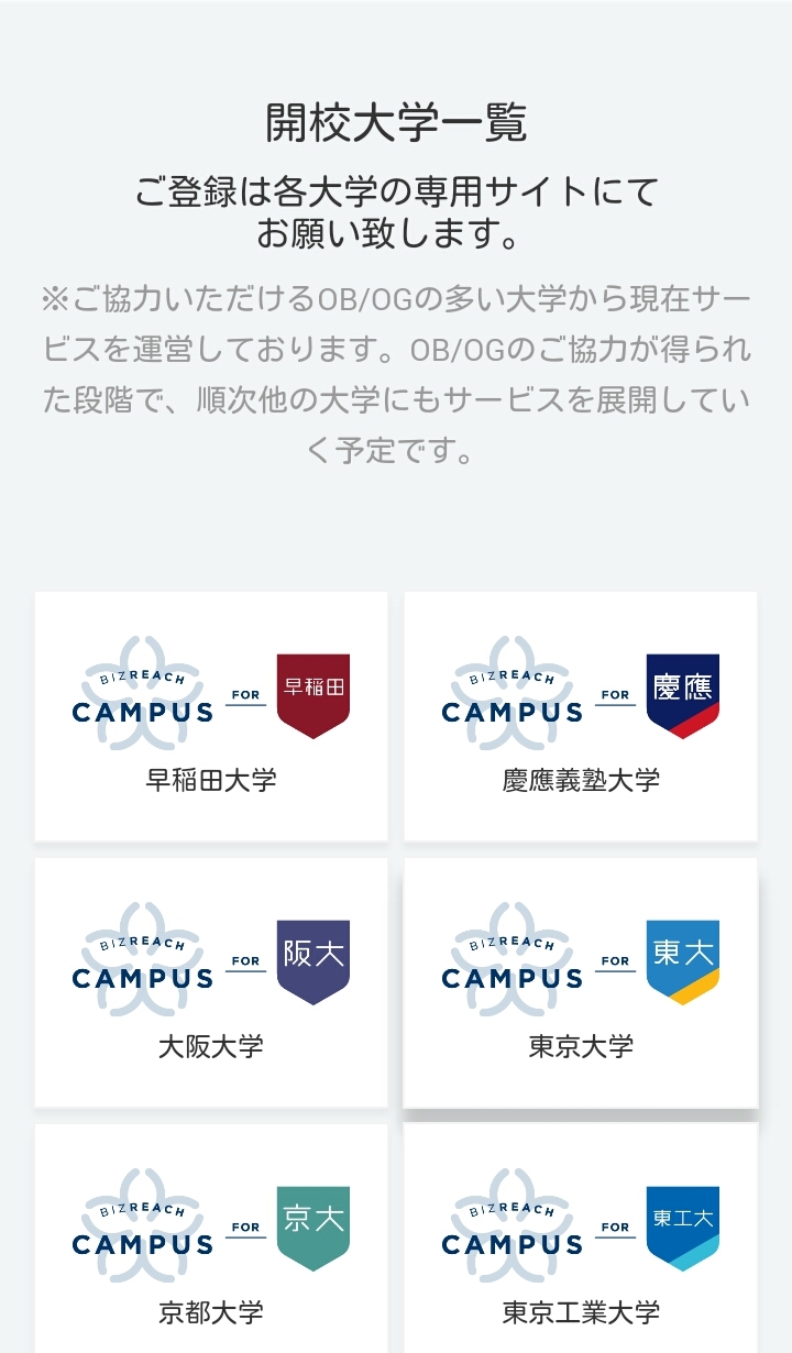 【学生専用】ビズリーチ・キャンパス | OB/OG訪問ネットワークちなみに・・・