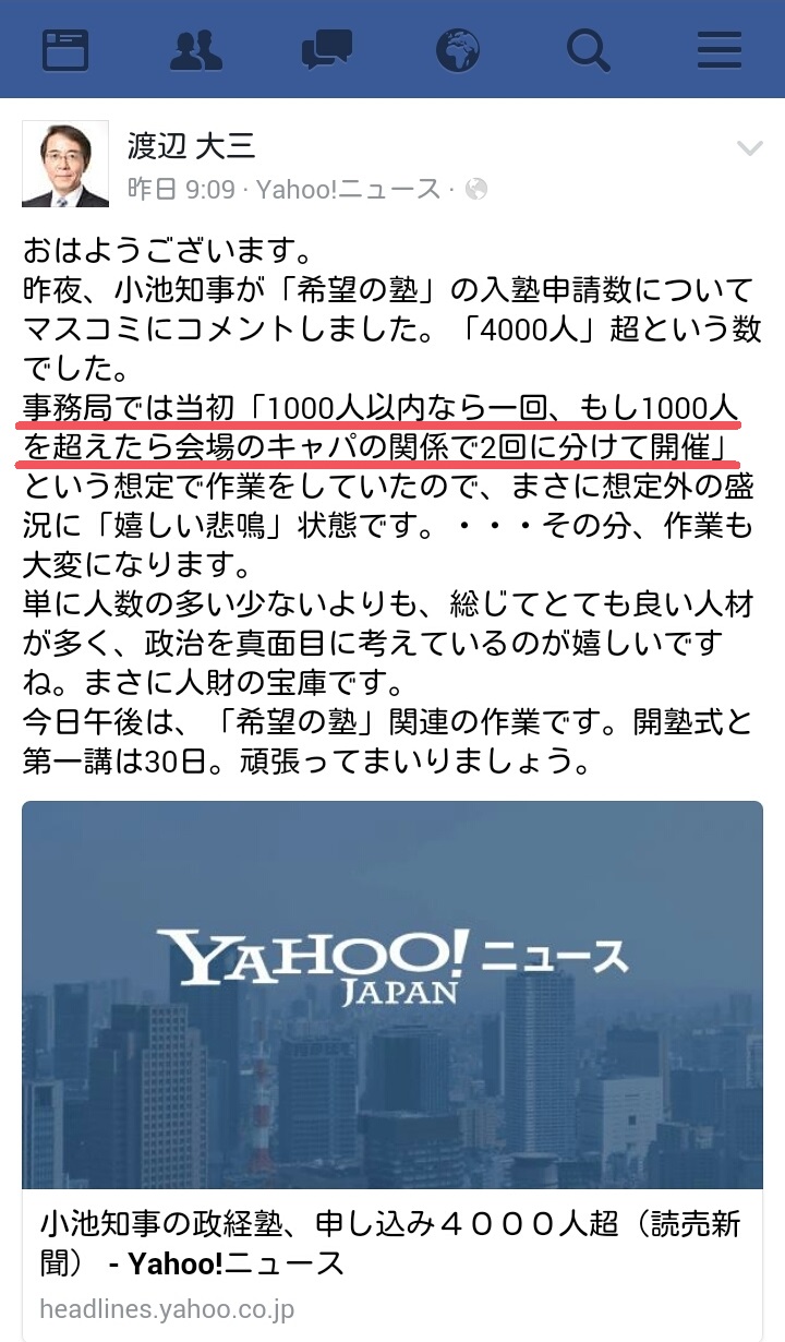 又ご報告させていただきます。 / 小池政治塾:「希望の塾」応募者が4000人超える (毎日新聞)