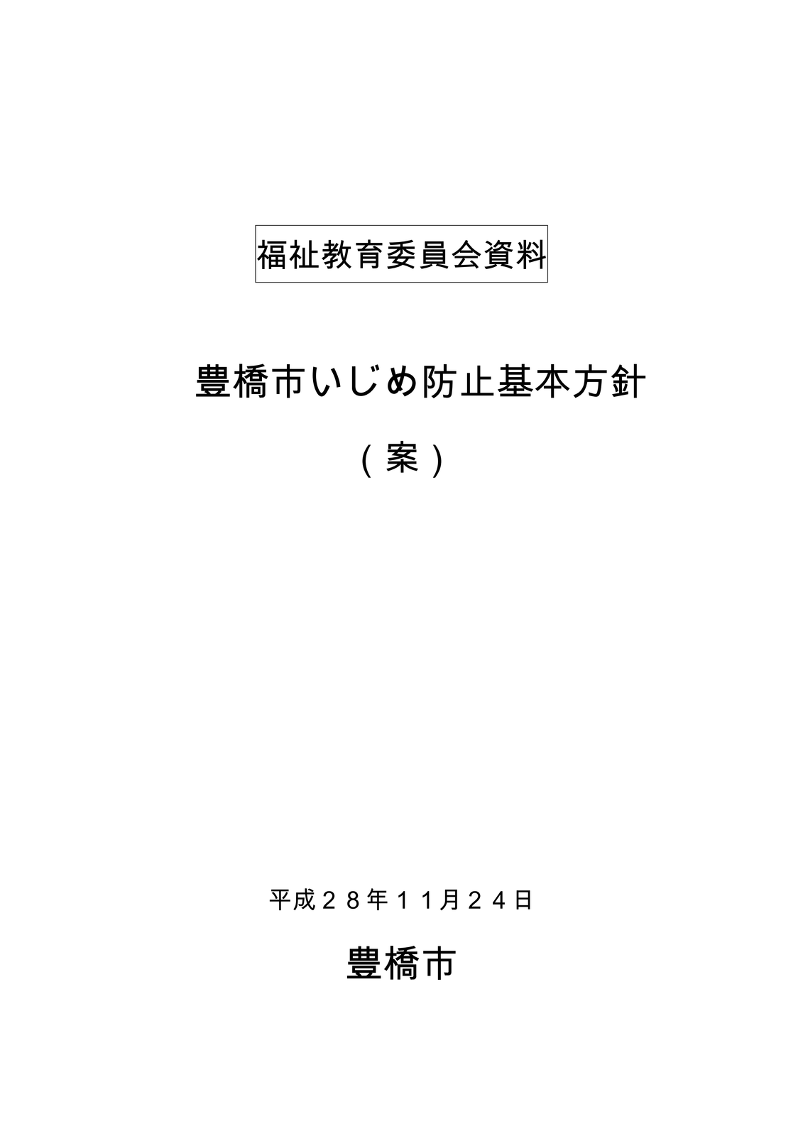 さて、11月24日の市議会(福祉教育委員会)で、「豊橋市いじめ防止基本方針(案)」が示されました。