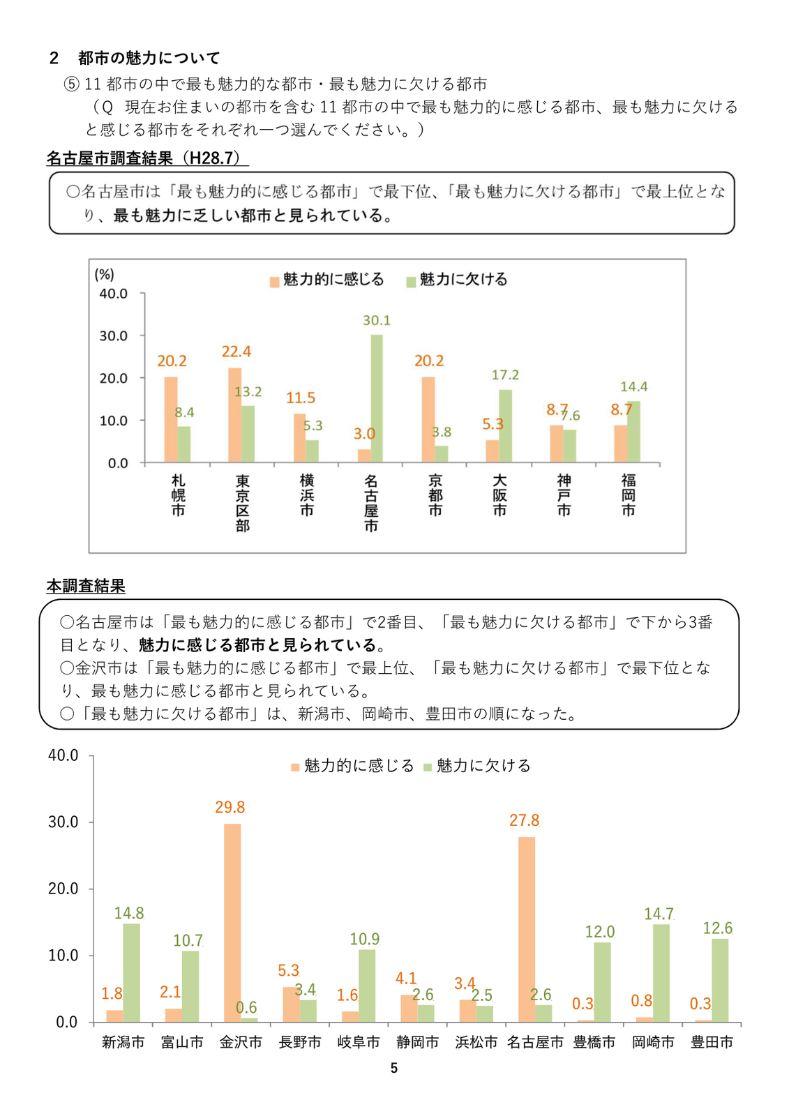 - 名古屋市は「最も魅力的に感じる都市」で2番目、「最も魅力に欠ける都市」で下から3番目となり、魅力に感じる都市と見られている。