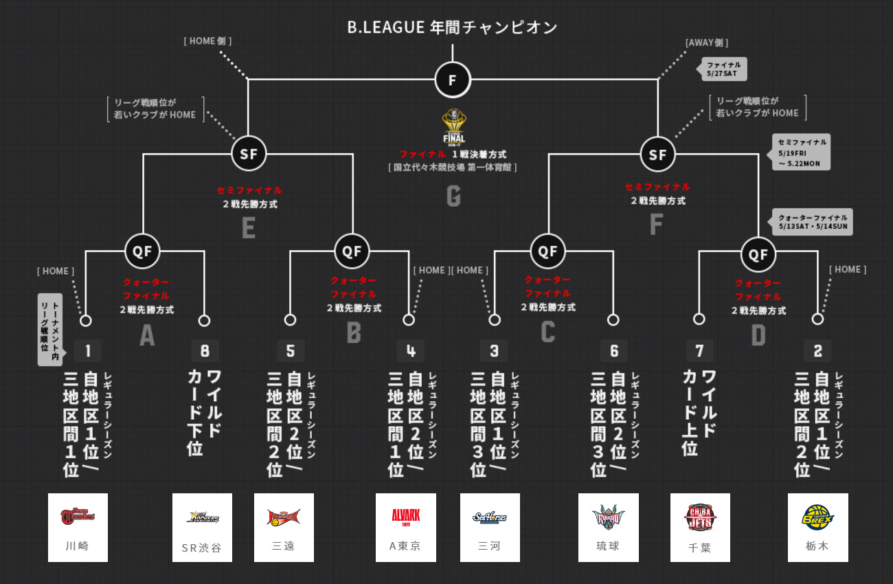 リーグ最高勝率を誇る川崎は、CS準々決勝で同地区3位のSR渋谷と激突。5位富山と6位横浜はいずれもB1残留プレーオフへ。#Bリーグ