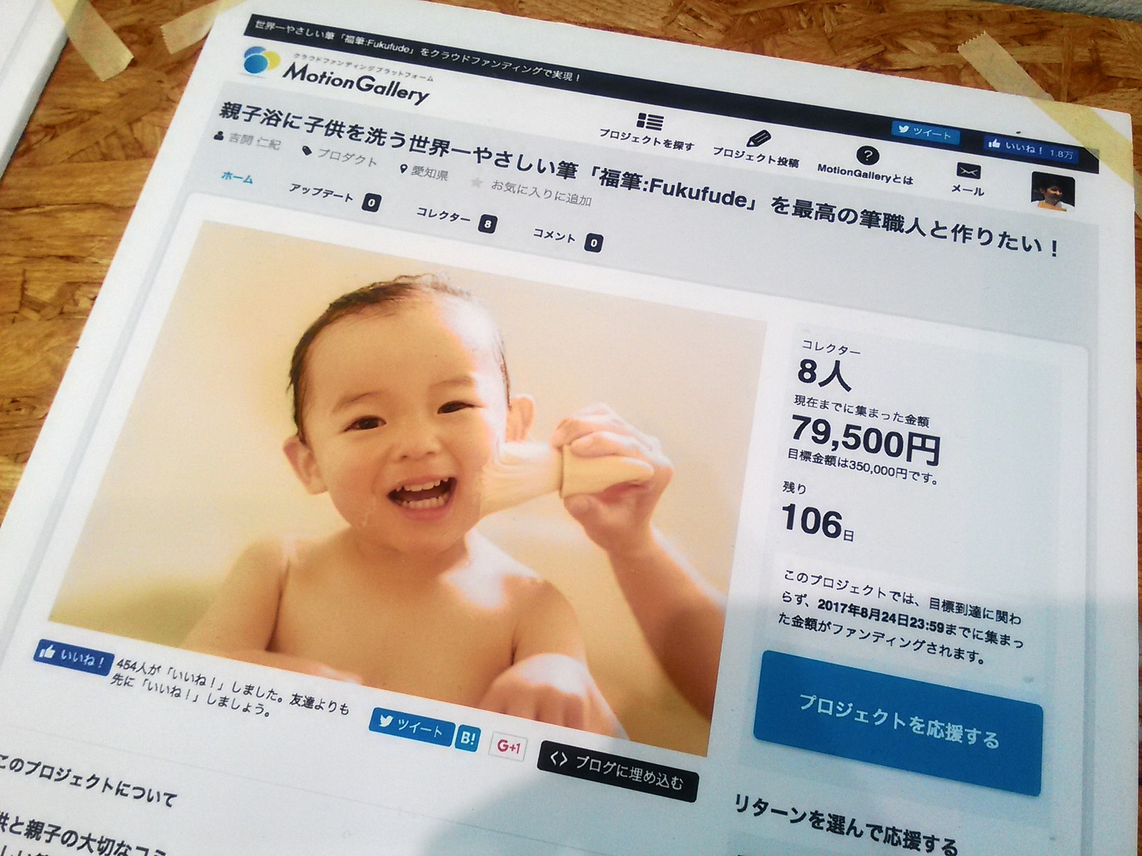 親子浴に子供を洗う世界一やさしい筆「福筆:Fukufude」を最高の筆職人と作りたい!クラウドファンディングは8月24日までですが、