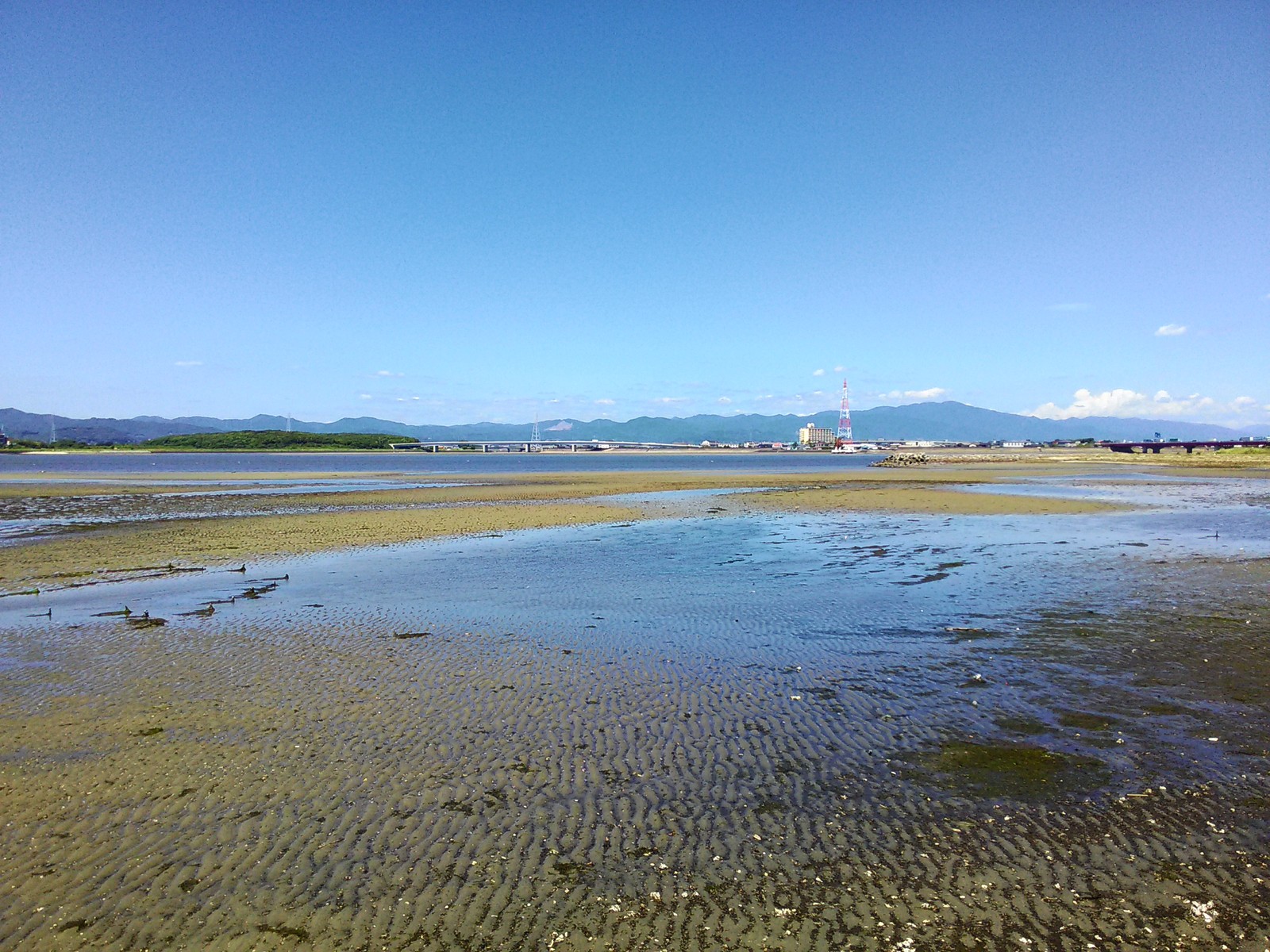 豊川河口に広がる六条潟は、全国有数のアサリ稚貝の発生場所であり、豊川河口域をアサリ禁漁区として保護しています。この資源調査に基づいて県内各漁場へ移植することにより、アサリ資源の有効利用を図っています。また、本県のアサリ漁業は日本一の漁獲量を誇っています。