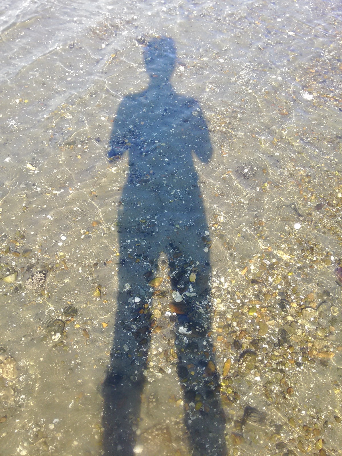 足が沈み込んだため、この時点で、水面はぼくの膝まで来ていました。
