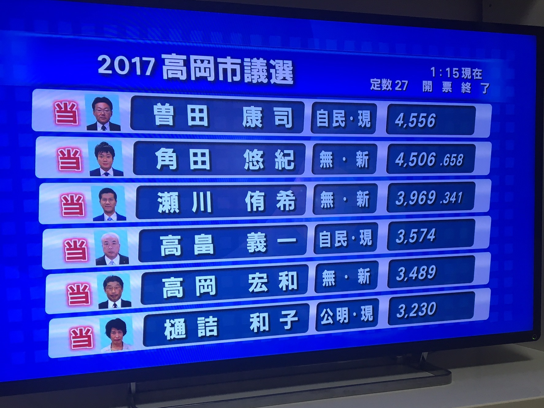 27歳(もちろん新人)の竹下修平さんが、4位当選をされました。