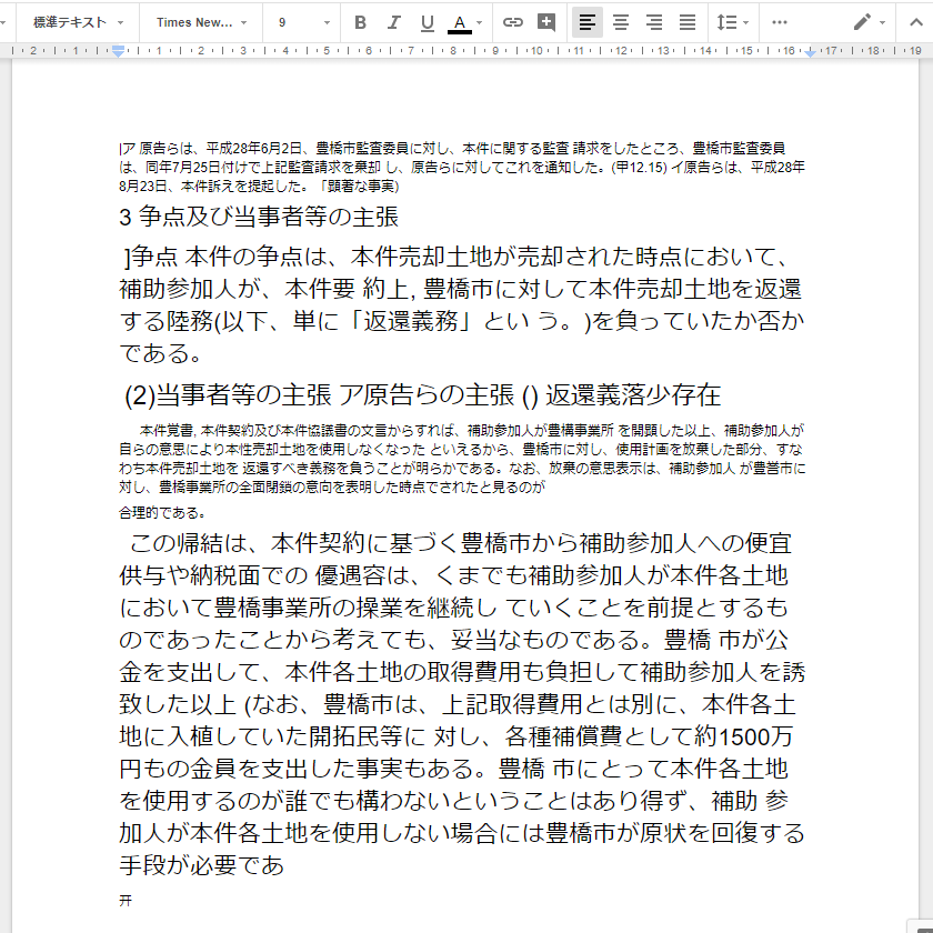 - 「豊橋市としては、工場踏致の一環であったからこそ本件各土地の無償提供を始めとする様々な便宜供与をしたものである以上、工場としての使用が全面的にされなくなった場合に、一部放棄の場合には生じないような利益を補助参加人に与えなければならない合理的な理由は一切ない」