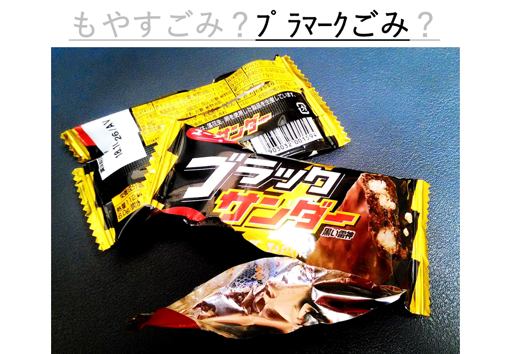 ※ブラックサンダーの袋くらい薄いプラスチックに、同程度のシールがあったら、プラスチックの割合が小さくなるので、もやすごみに。