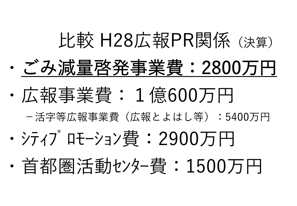 中でも、注目したのは、ごみ関係の「PR(広報)」関連予算。