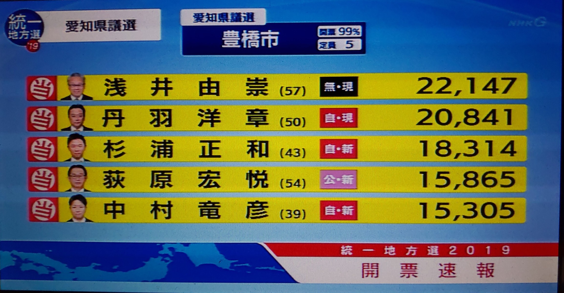 > 愛知県議選 豊橋市 | 統一地方選挙 2019 | NHK選挙WEB 開票速報… https://t.co/gmt8ETakXH