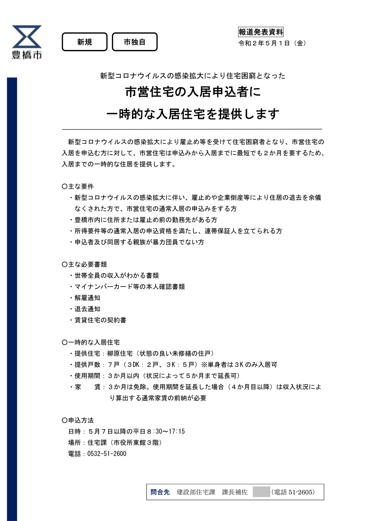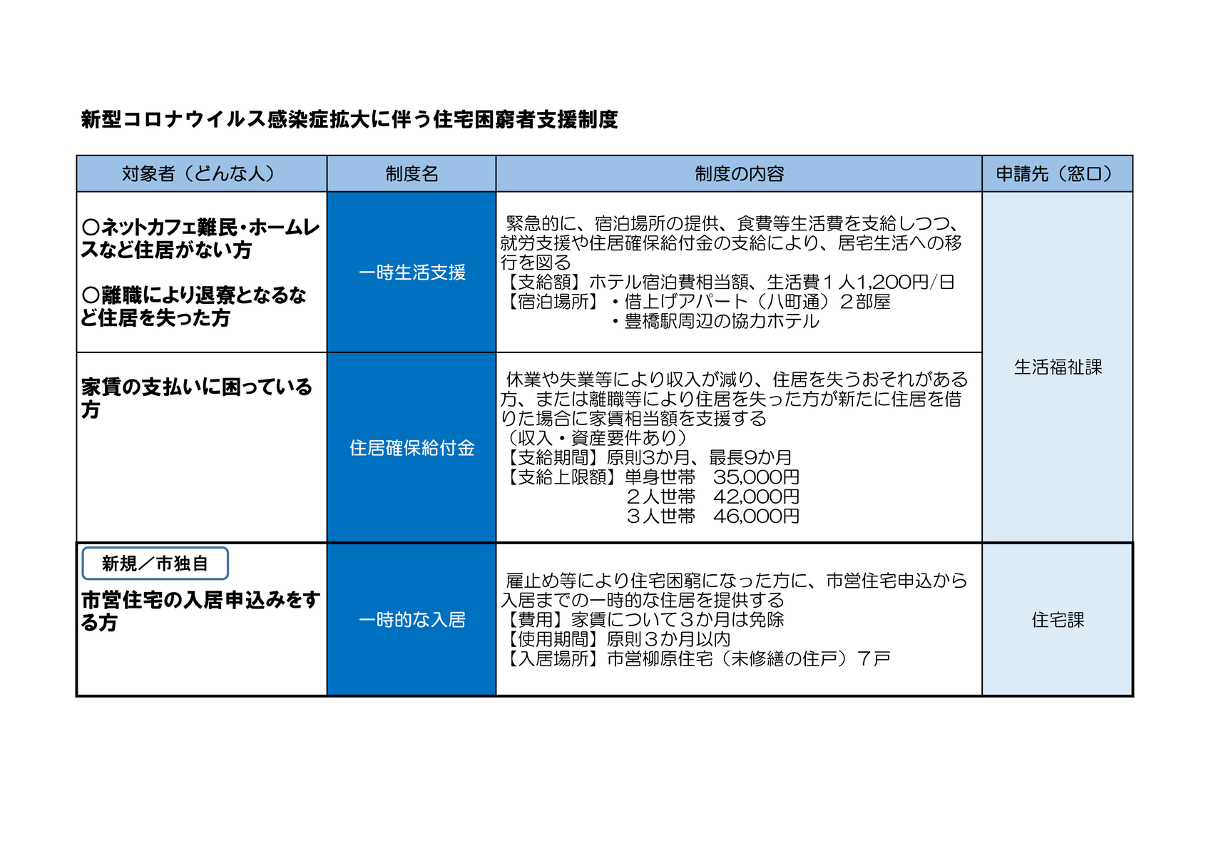 また、豊橋市でも「新型コロナウイルス感染症拡大に伴う住宅困窮者支援制度」を進めています。