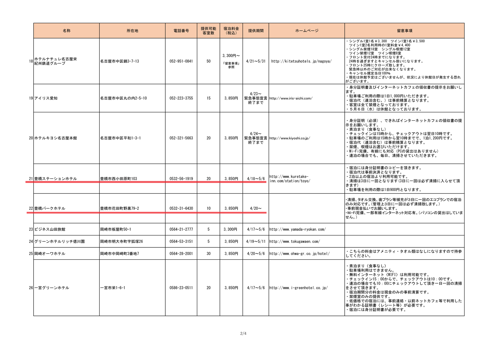 ・豊橋駅周辺の協力ホテル