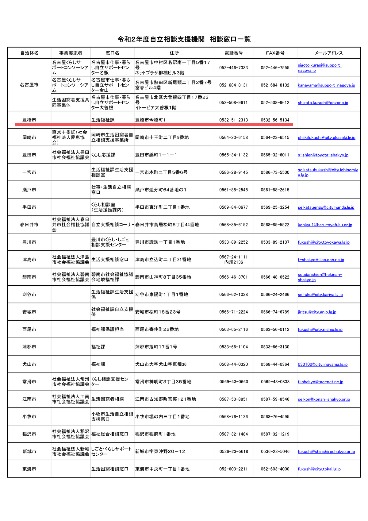 インターネットカフェ等休業要請に伴う代替施設として利用が可能な宿泊施設(掲載日:2020年5月1日更新)豊橋市役所の生活福祉課(生活困窮者支援)のURLは下記です。