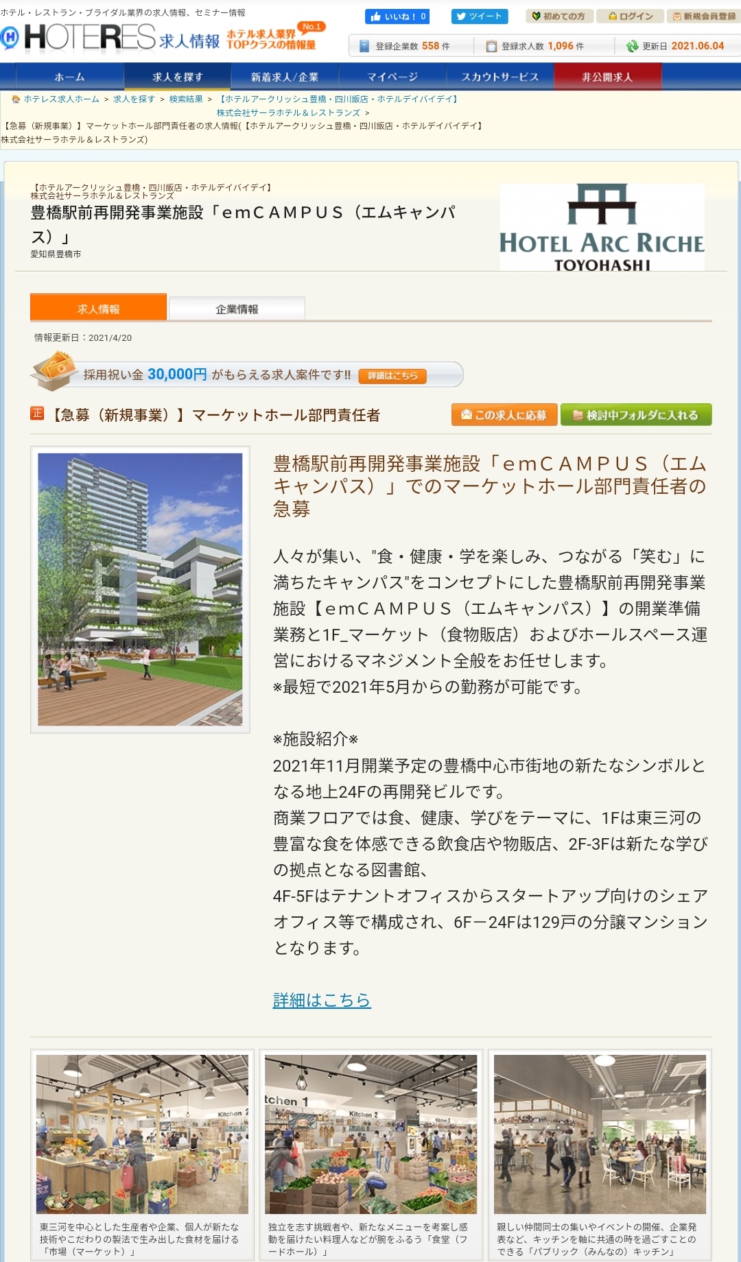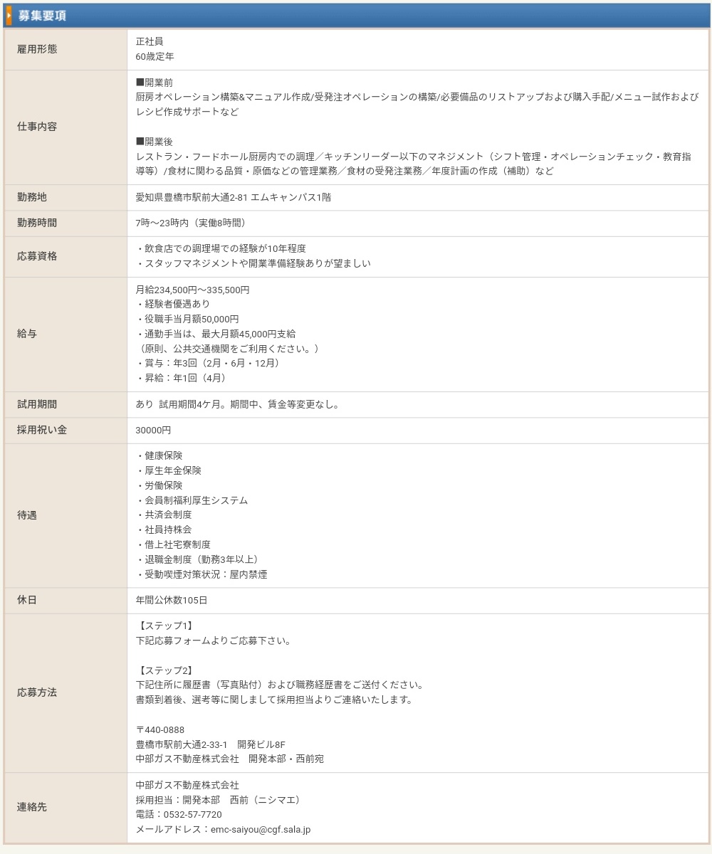 現在、求人情報あるのは、次の7件(いずれも正社員【急募】)です。