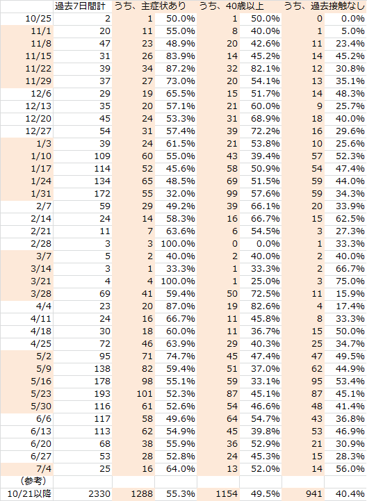 これまで同様「主な症状」や「接触」等など含め、情報は全て発表時のものです。