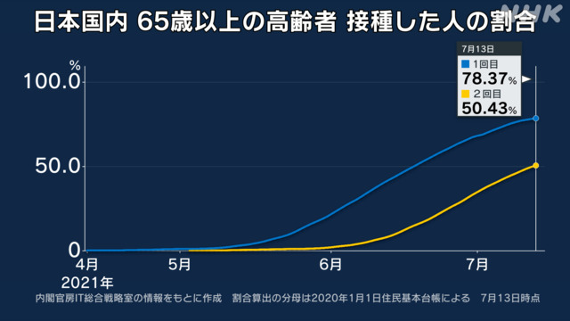 4月に始まった高齢者向け接種は、菅義偉首相が7月末までに希望者分を終える方針を表明していた。