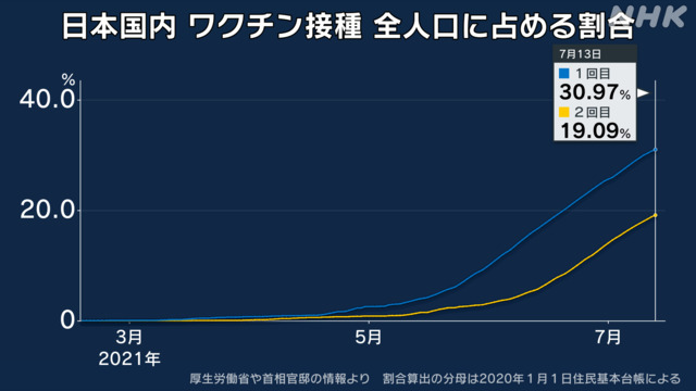 また今週(7月14日)から全体の接種回数と%も示されました。