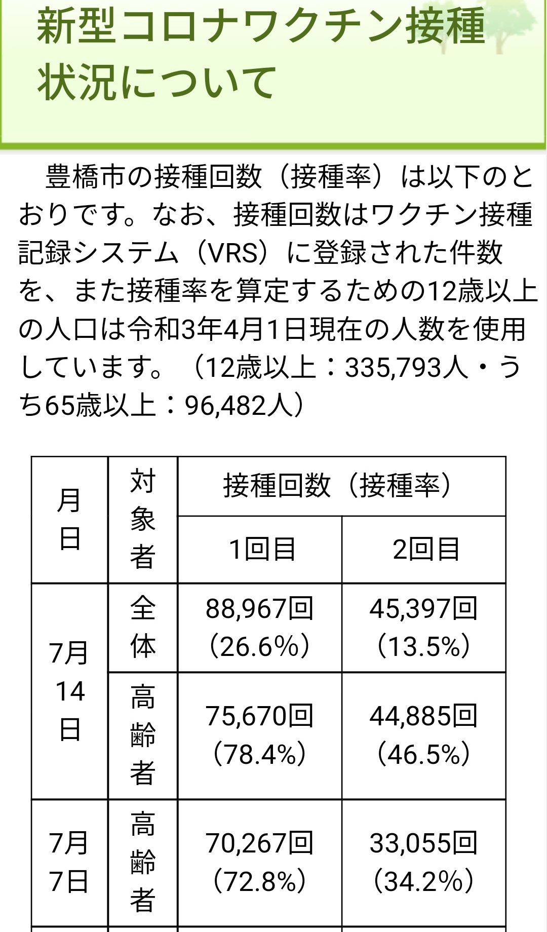 さて、豊橋市の高齢者のワクチン接種状況が、更新されました。