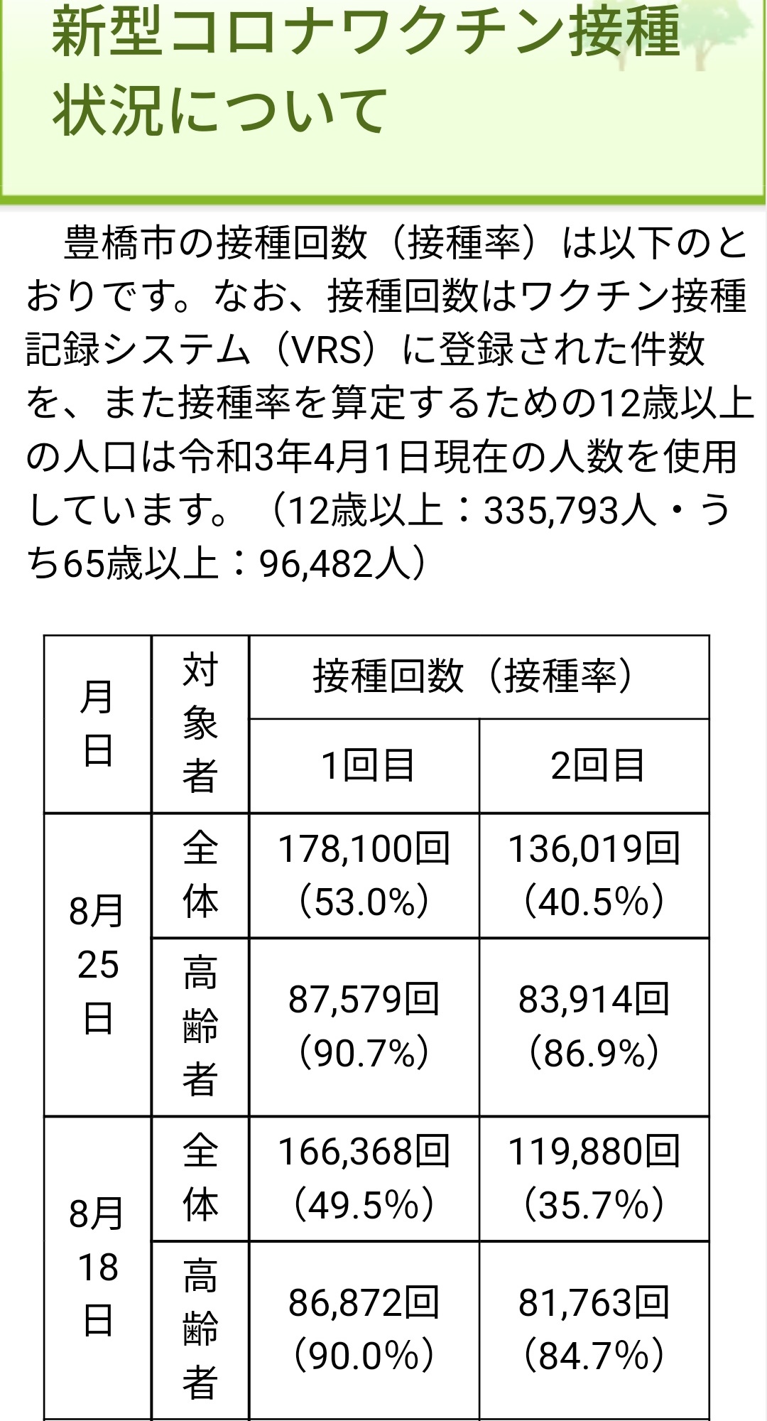 さて、豊橋市のワクチン接種状況が、更新されました。