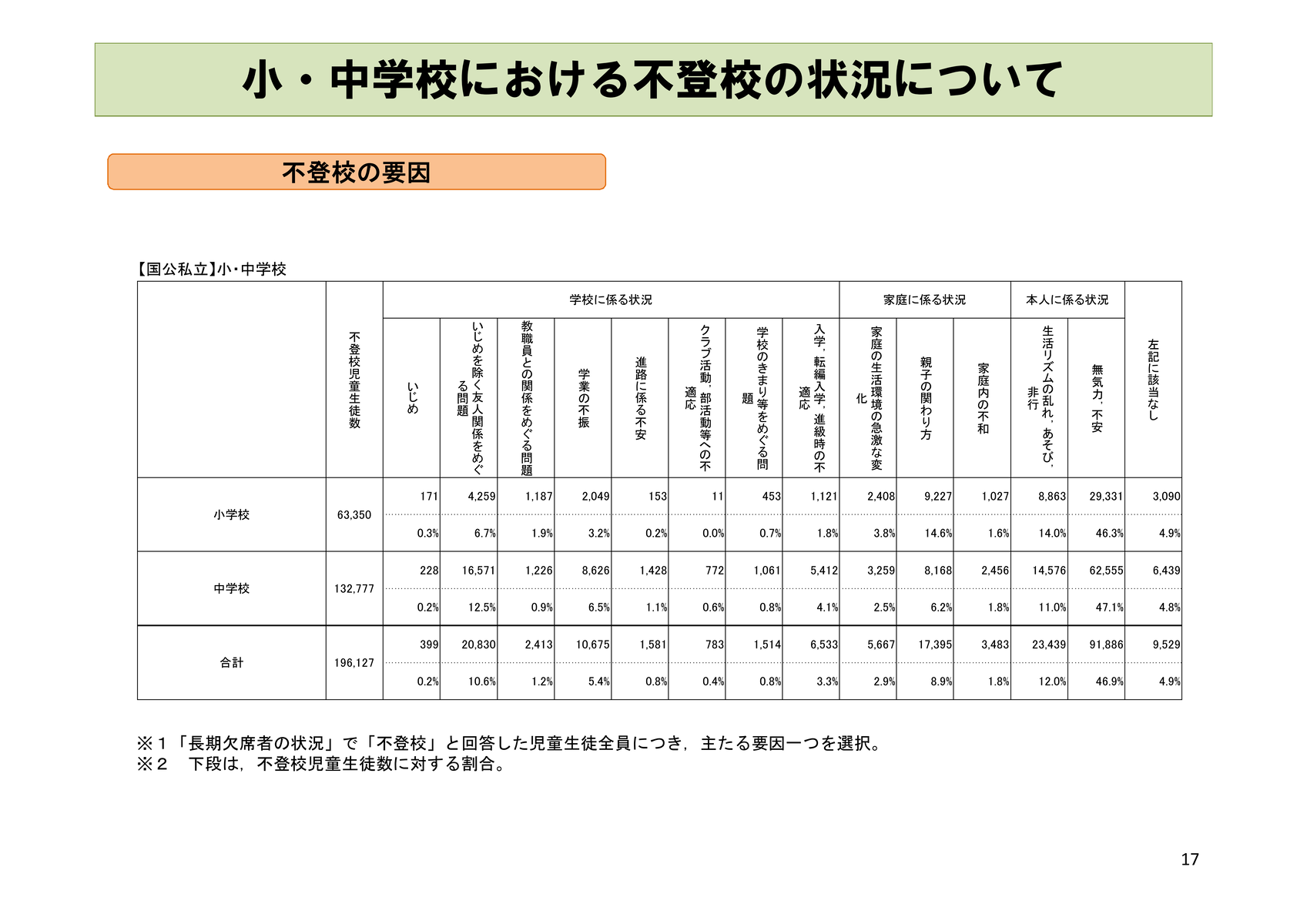 つまり、50万件のいじめが認知され、不登校も20万近くあるにも関わらず、