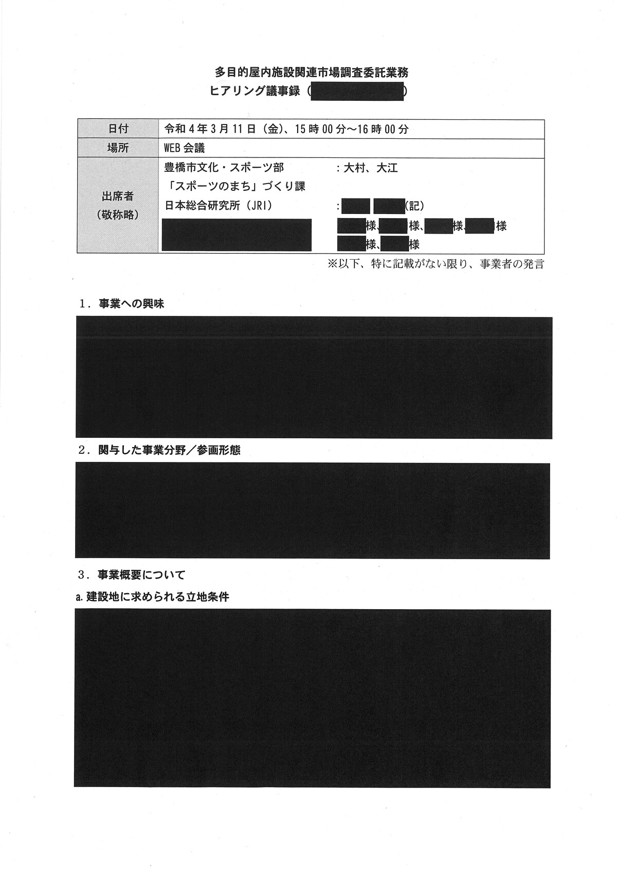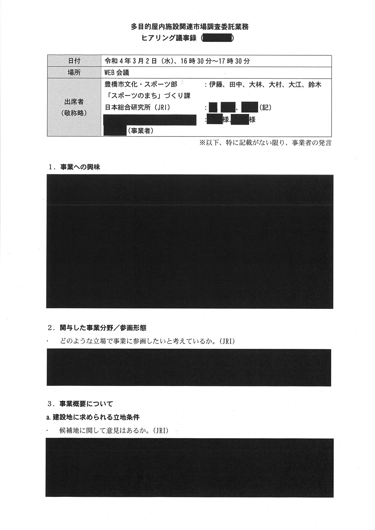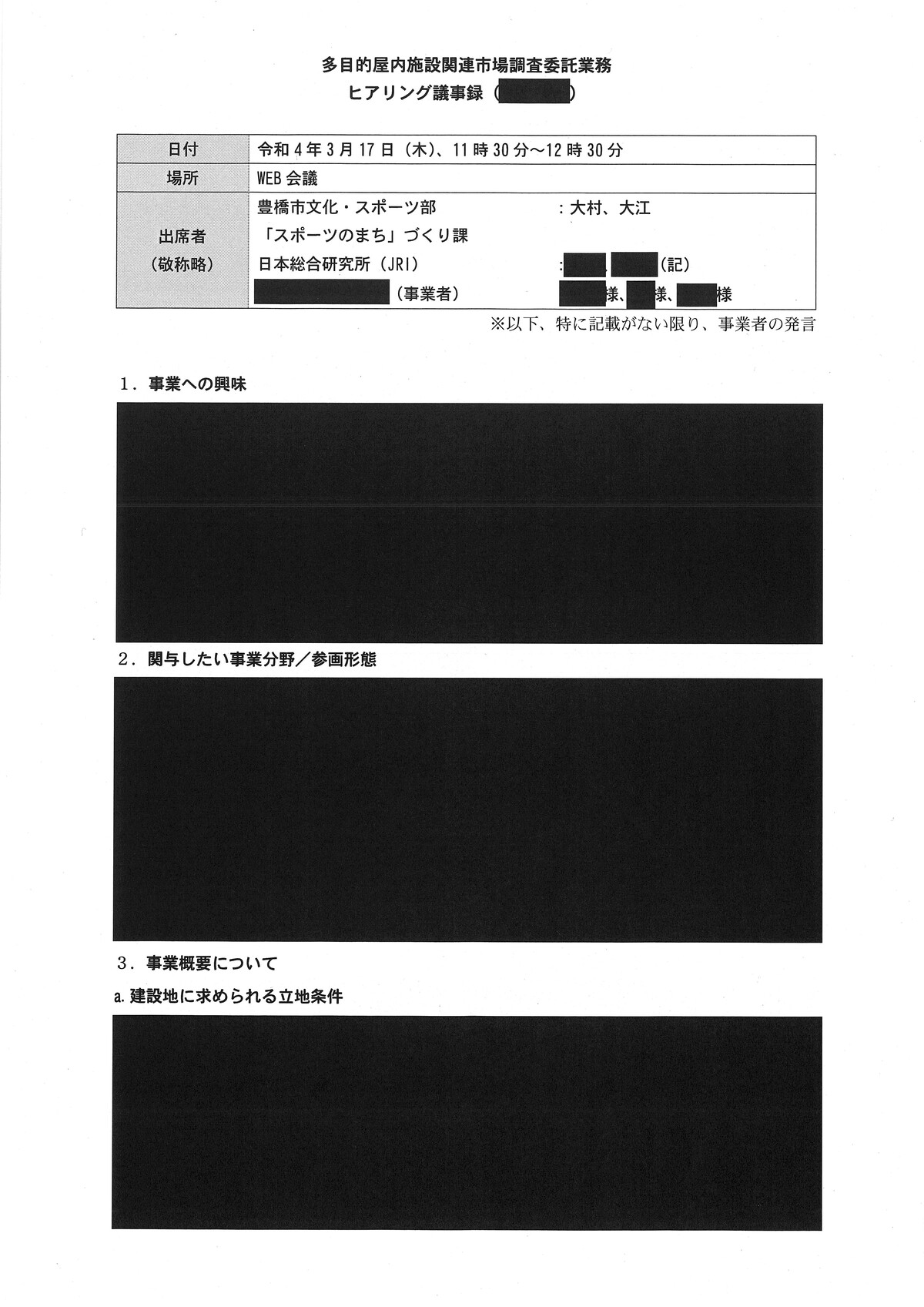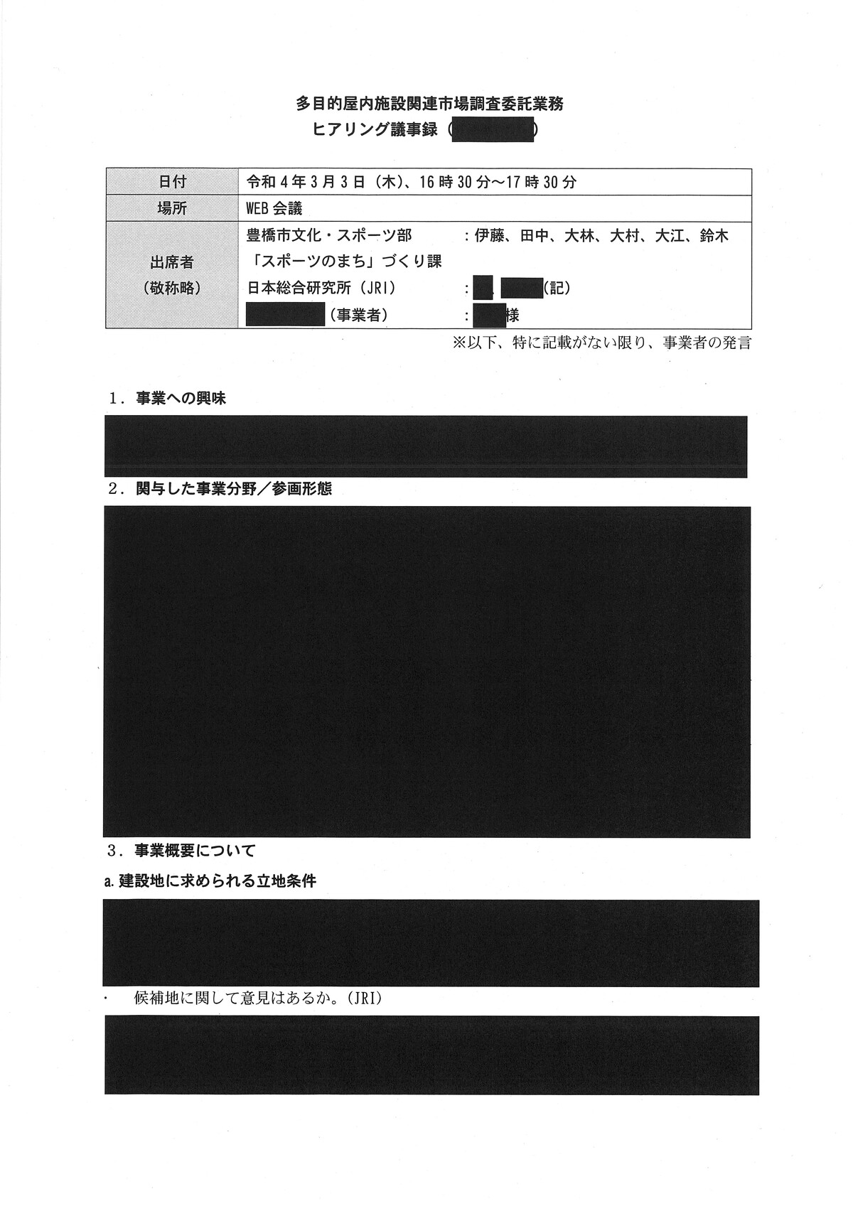 新アリーナ「真っ黒」な調査会社(日本総研)と豊橋市のやり取り - 愛知豊橋市長坂なおと のblogその際の、情報公開に不備があり、追加で文書が示されました。