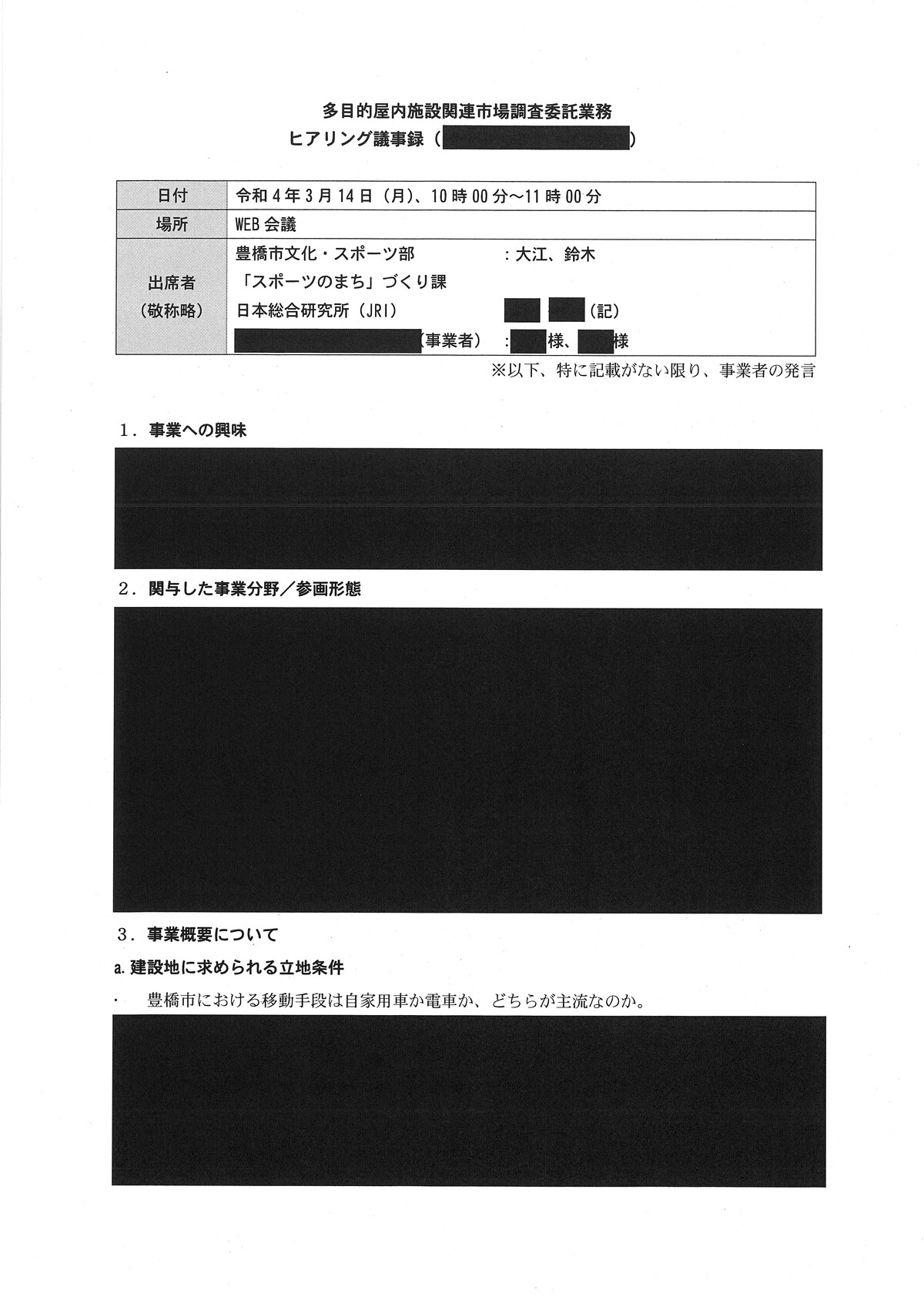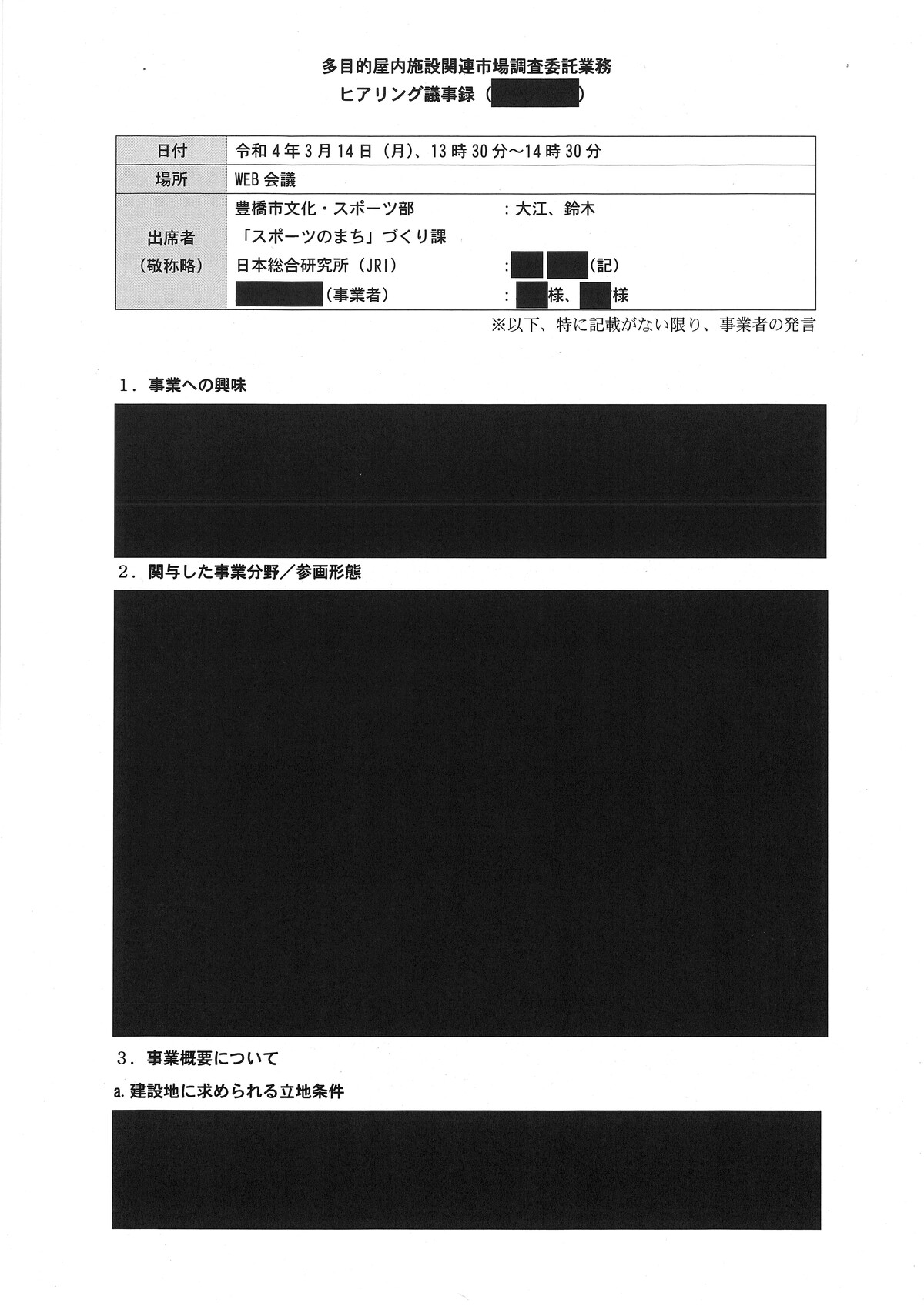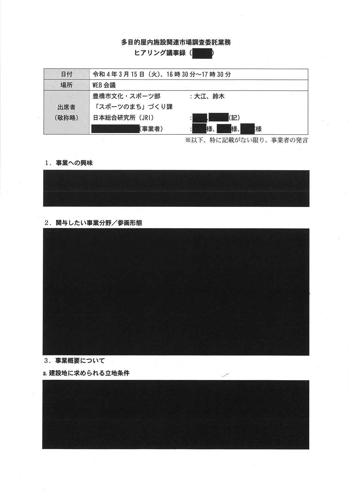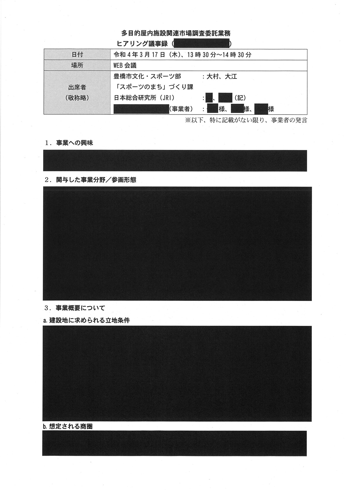 新アリーナ「真っ黒」な調査会社(日本総研)と豊橋市のやり取り - 愛知豊橋市長坂なおと のblogその際の、情報公開に不備があり、追加で文書が示されました。