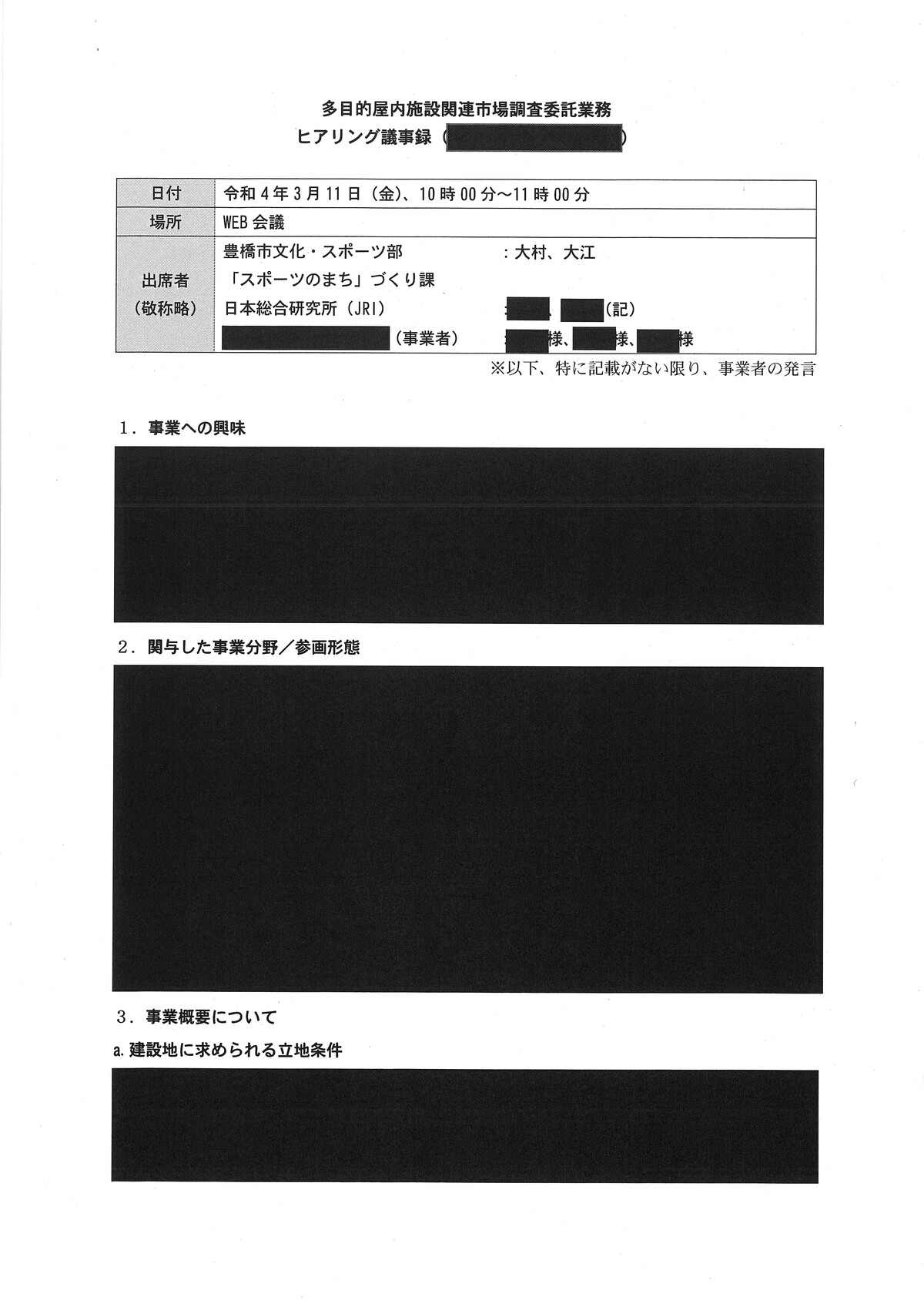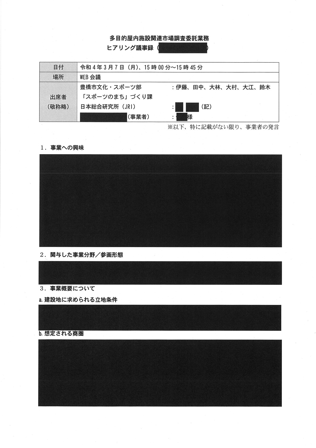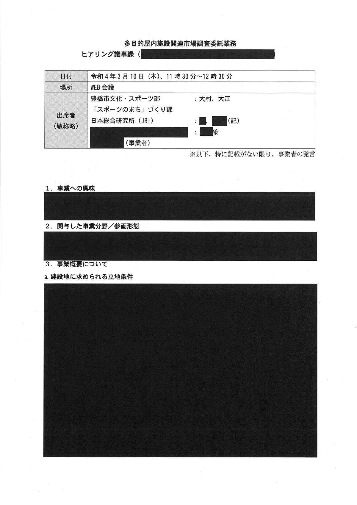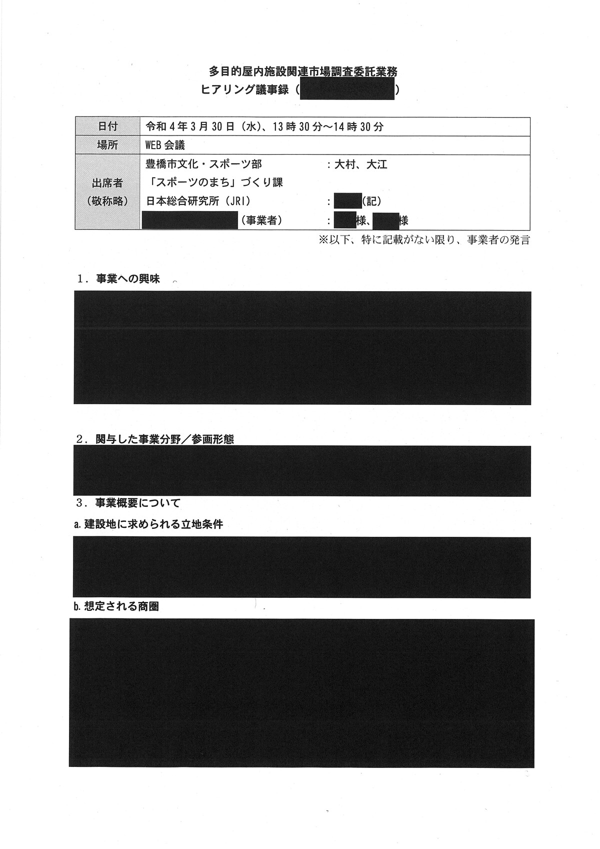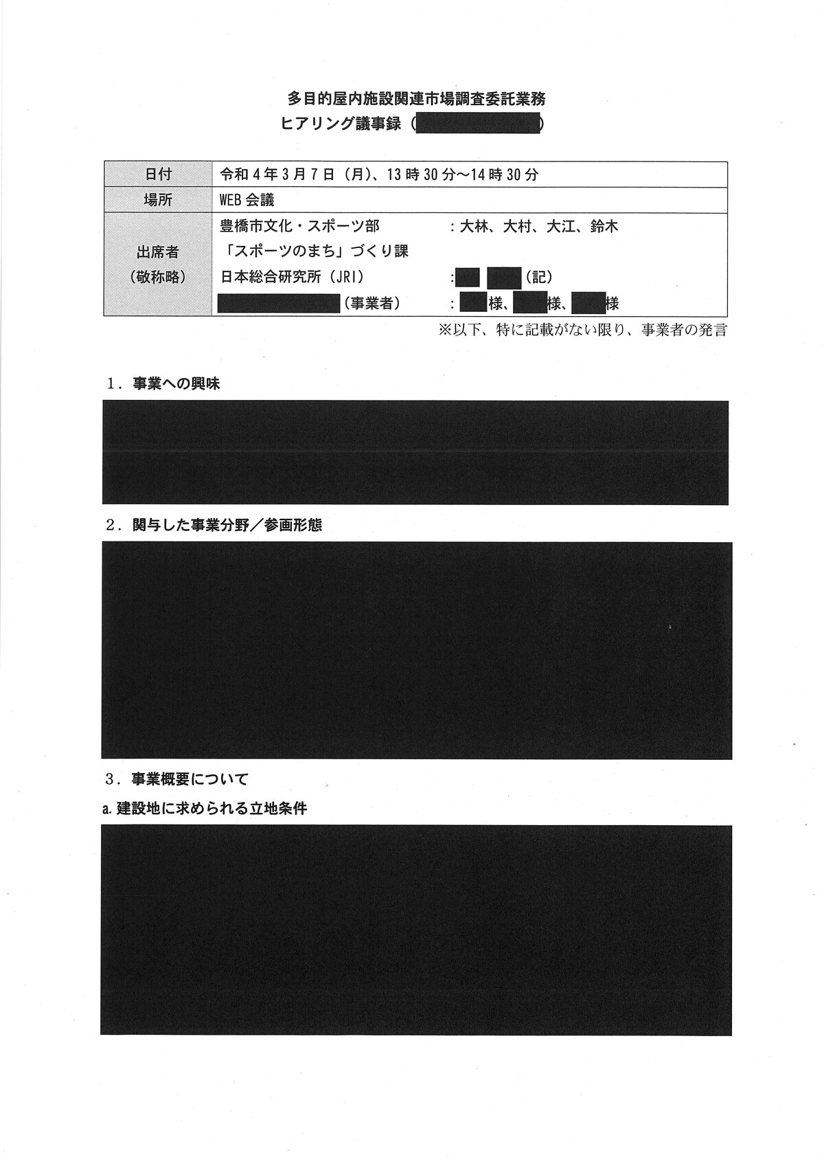 新アリーナ「真っ黒」な調査会社(日本総研)と豊橋市のやり取り - 愛知豊橋市長坂なおと のblogその際の、情報公開に不備があり、追加で文書が示されました。