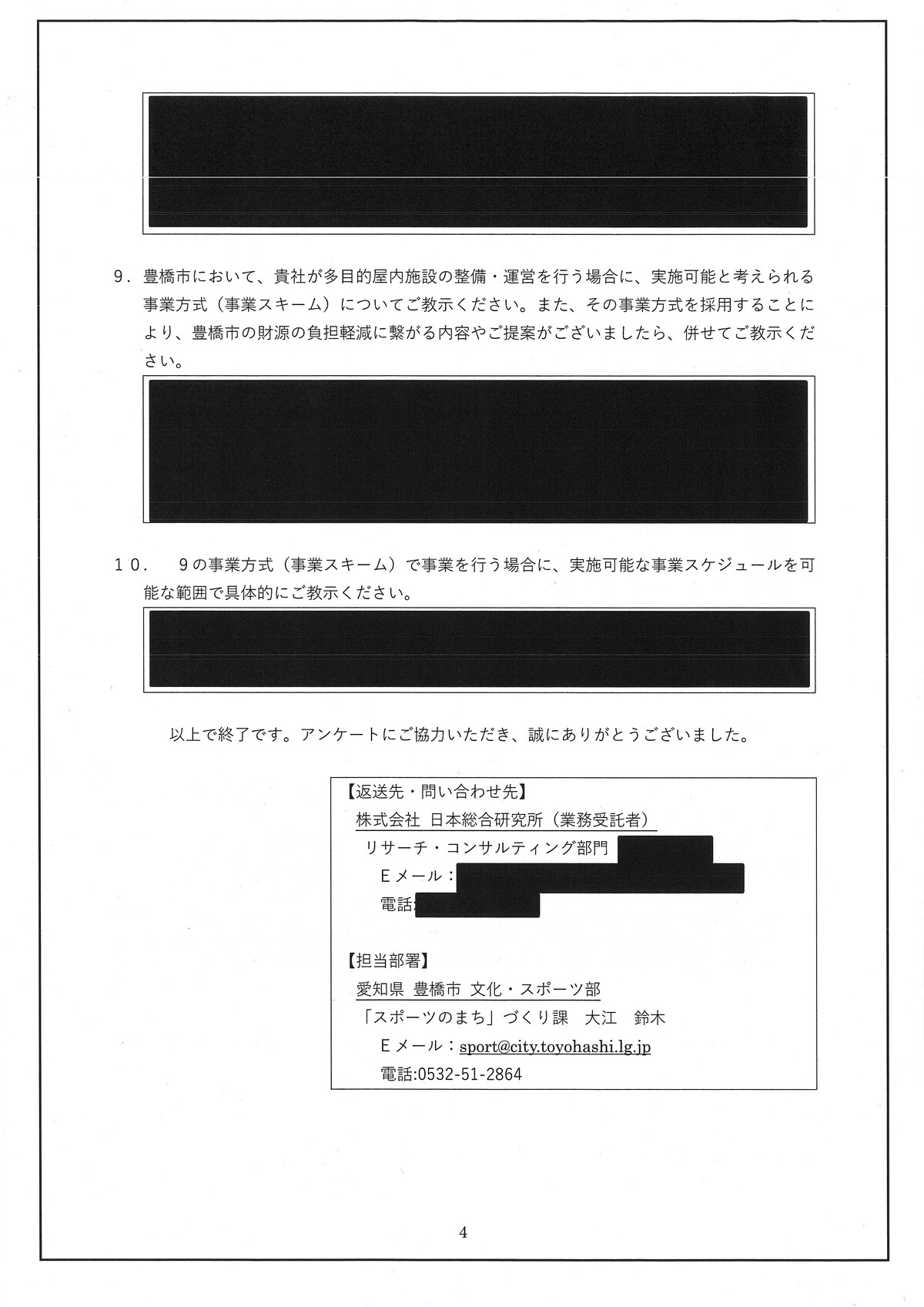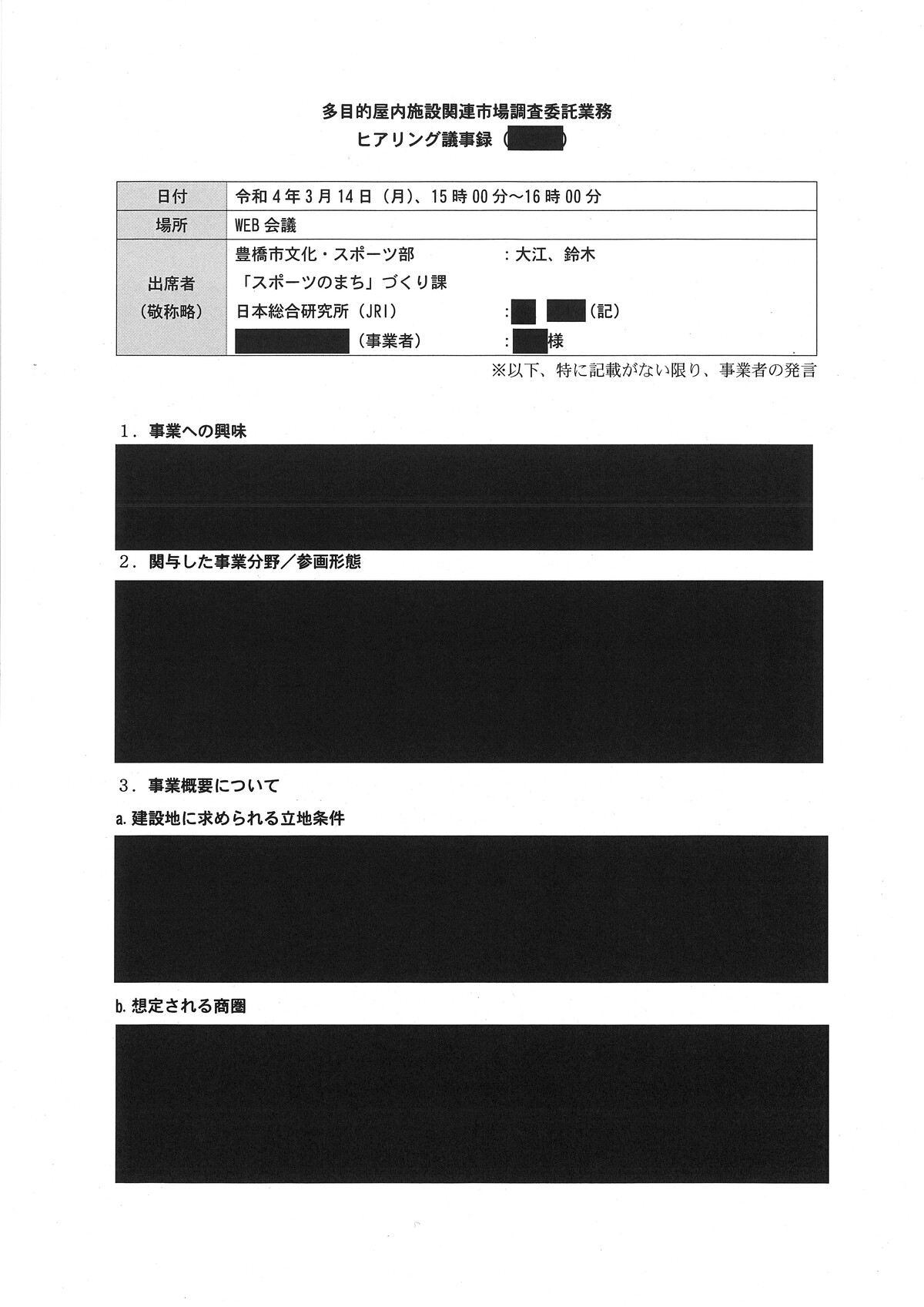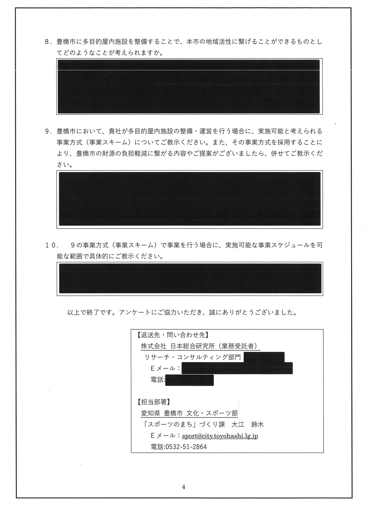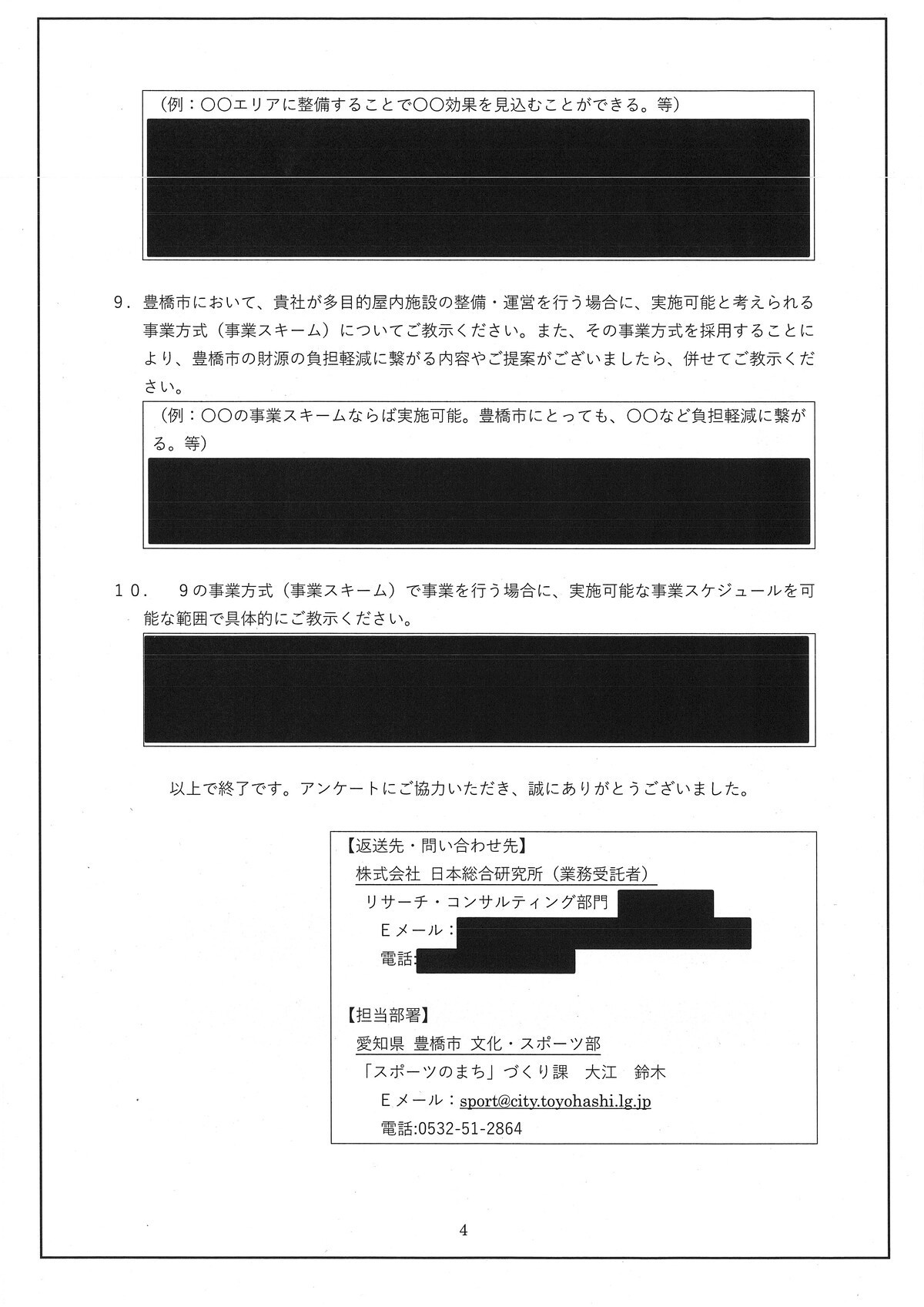 新アリーナ「真っ黒」な調査会社(日本総研)と豊橋市のやり取り - 愛知豊橋市長坂なおと のblogその際の、情報公開に不備があり、追加で文書が示されました。