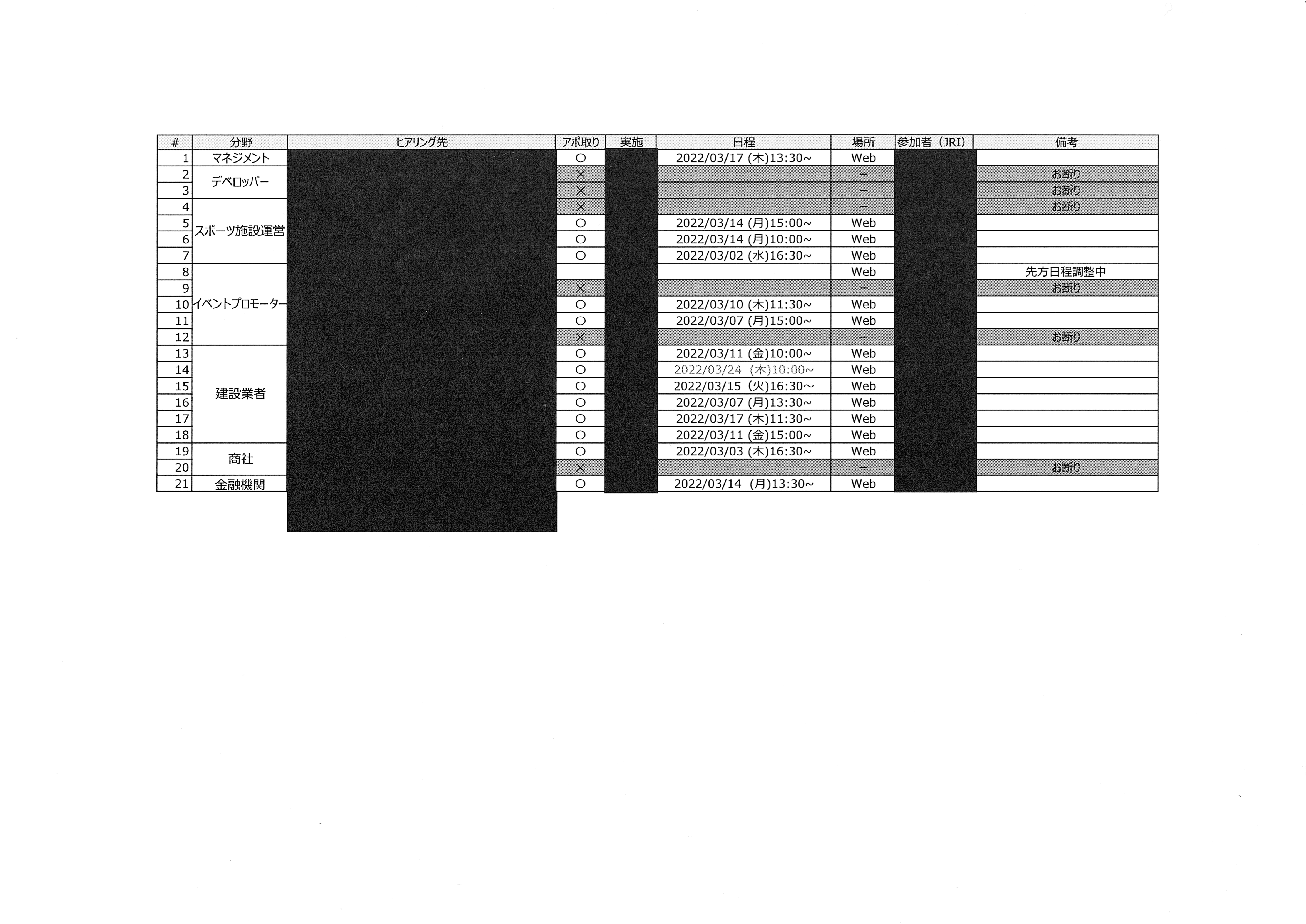 具体的には、ヒアリングの調査票(ヒアリング議事録)15社分相当と、