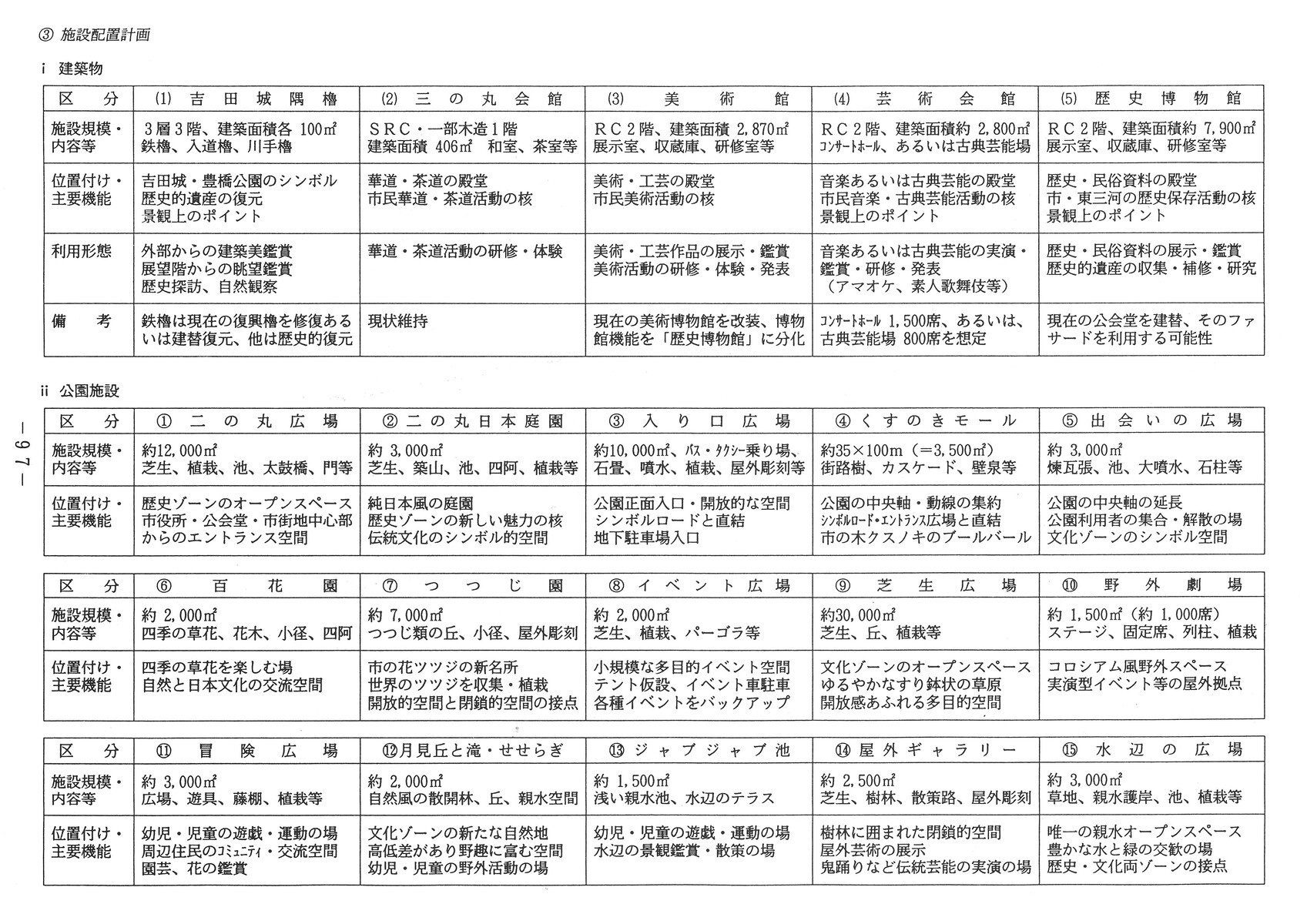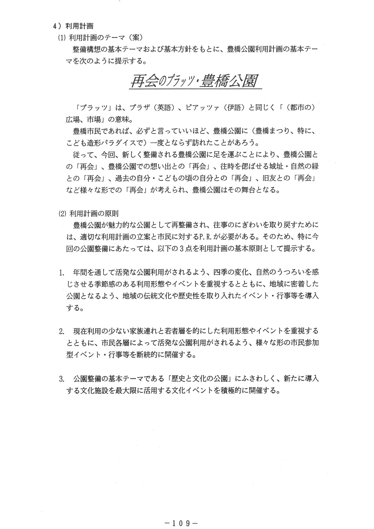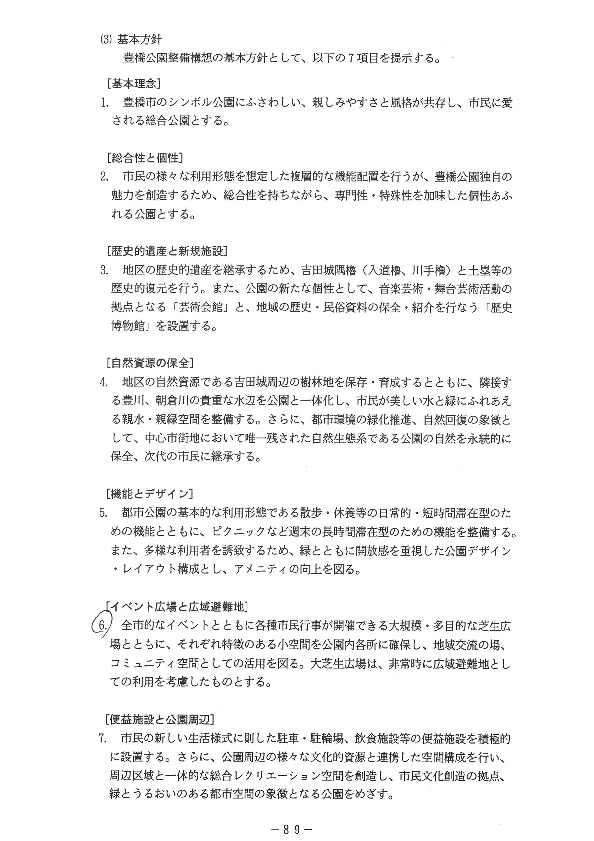 以下に、豊橋公園整備構想の主要ページ