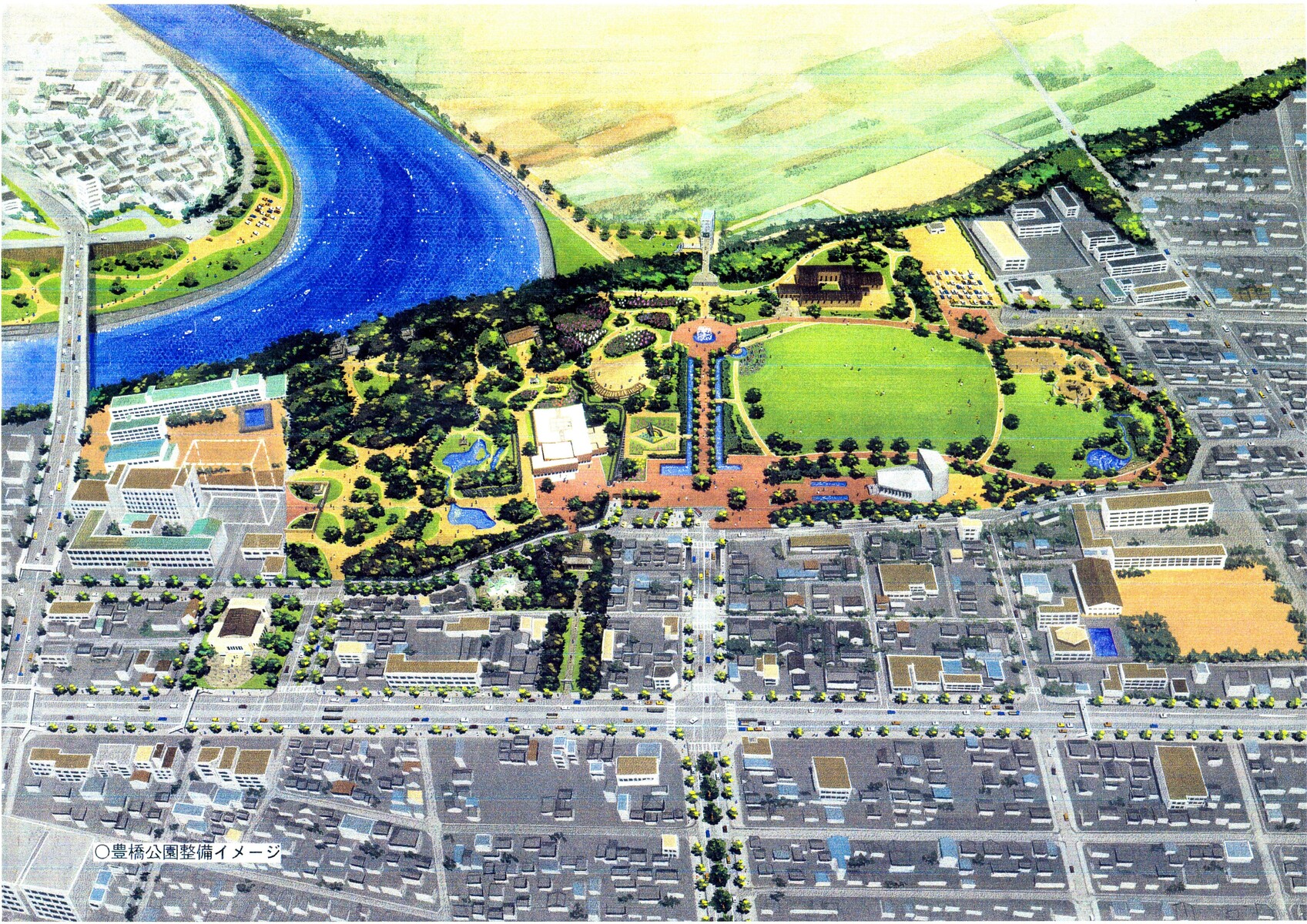 こちらに記載した「約30年前豊橋市が描いた『豊橋公園整備イメージ』」
