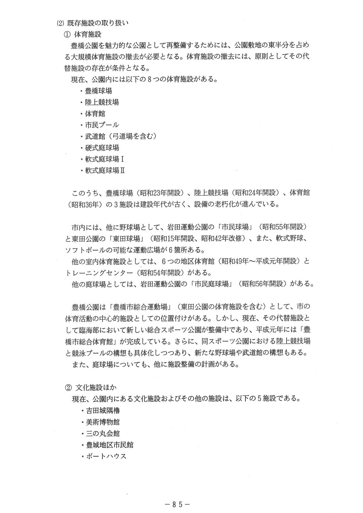 「豊橋公園整備構想策定調査 報告書」からです。