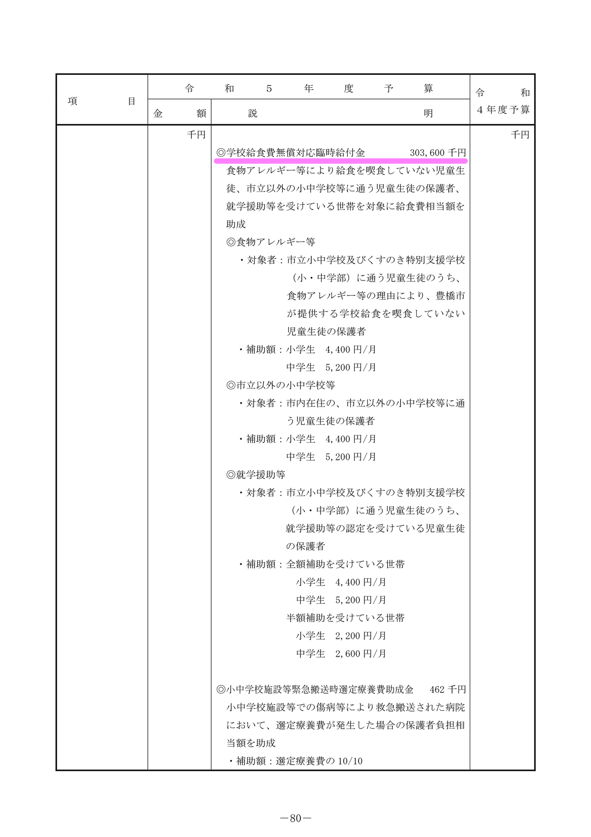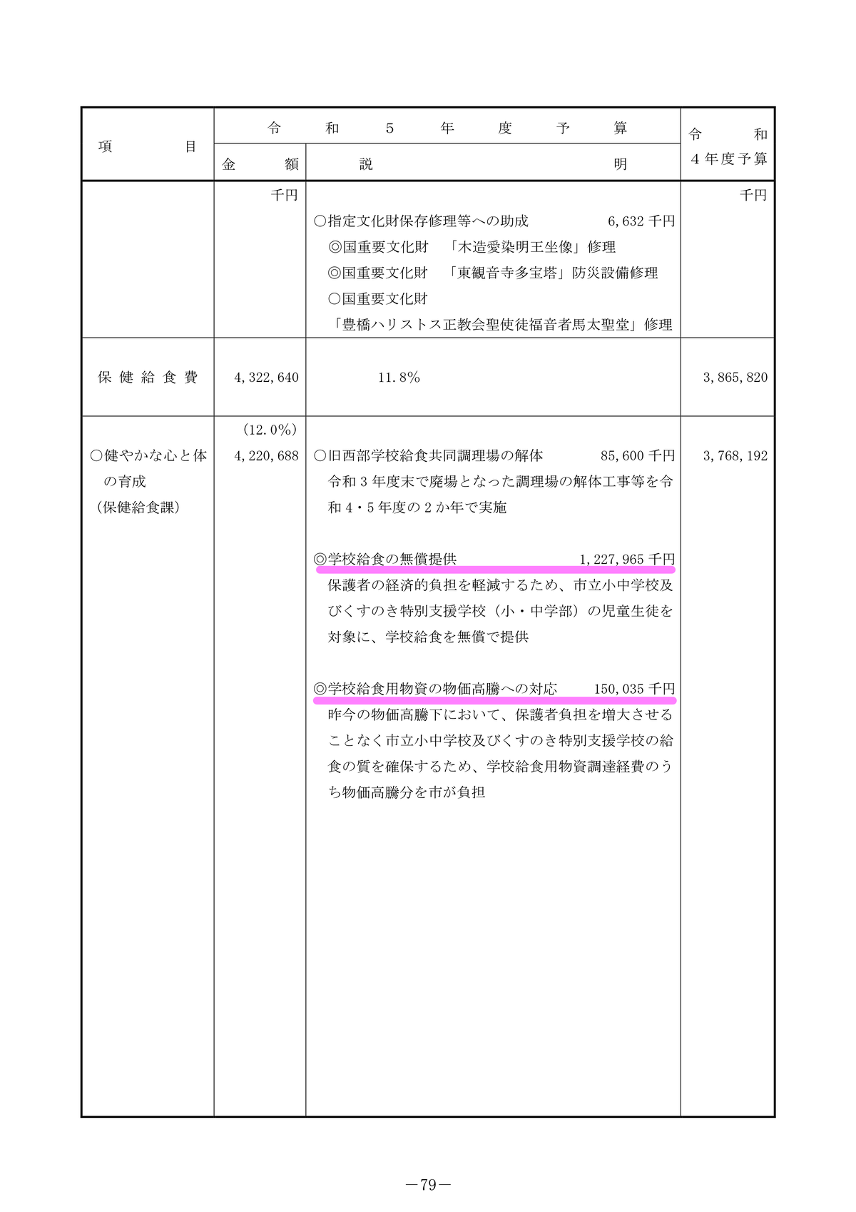 令和4年度 予算概要より抜粋(p79,80)※下線は長坂が追記