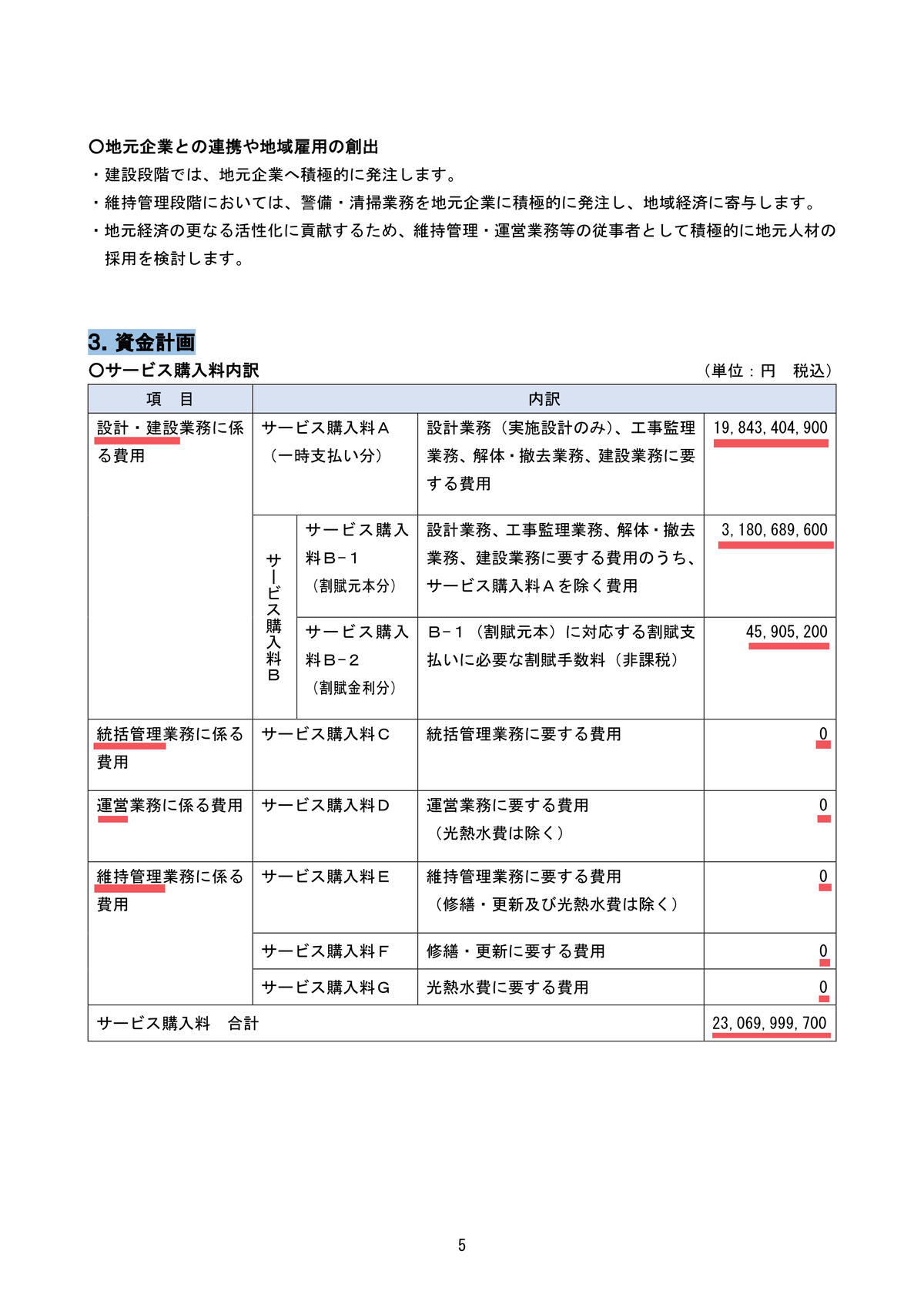 気になったのは、上から3つめ「割賦金利分(サービス購入料B-2)」約4600万円を除く、