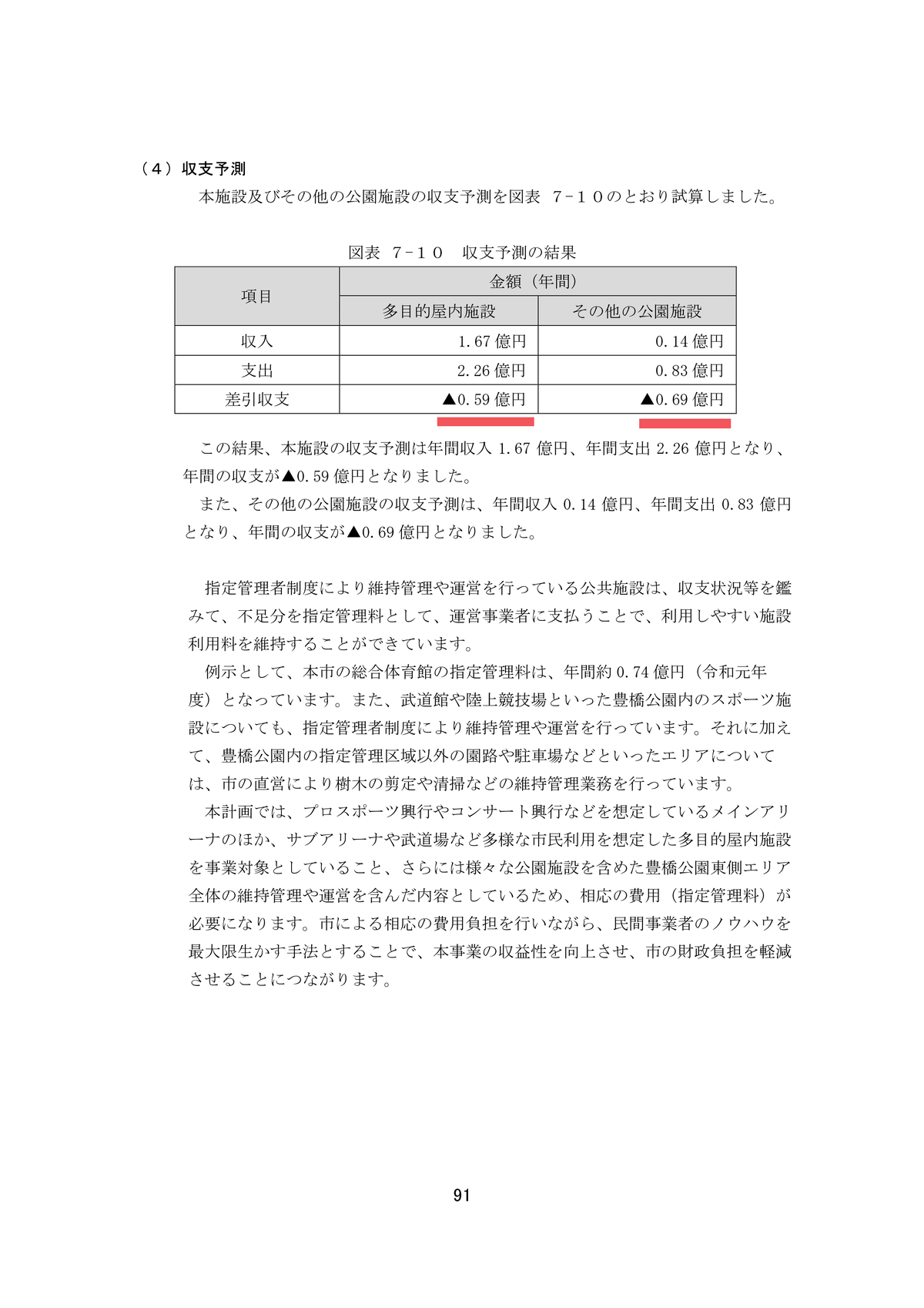 これは現行の陸上競技場など既存施設の収支を前提に試算しているため、