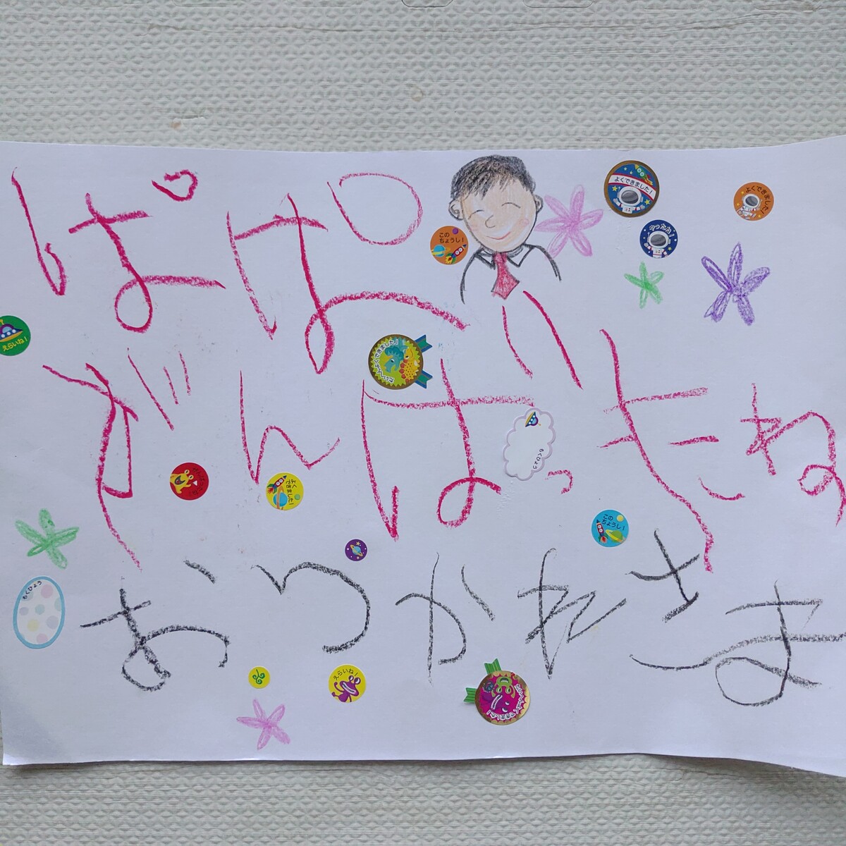 ひらがな練習中の2歳児が一生懸命書いてくれたようです。